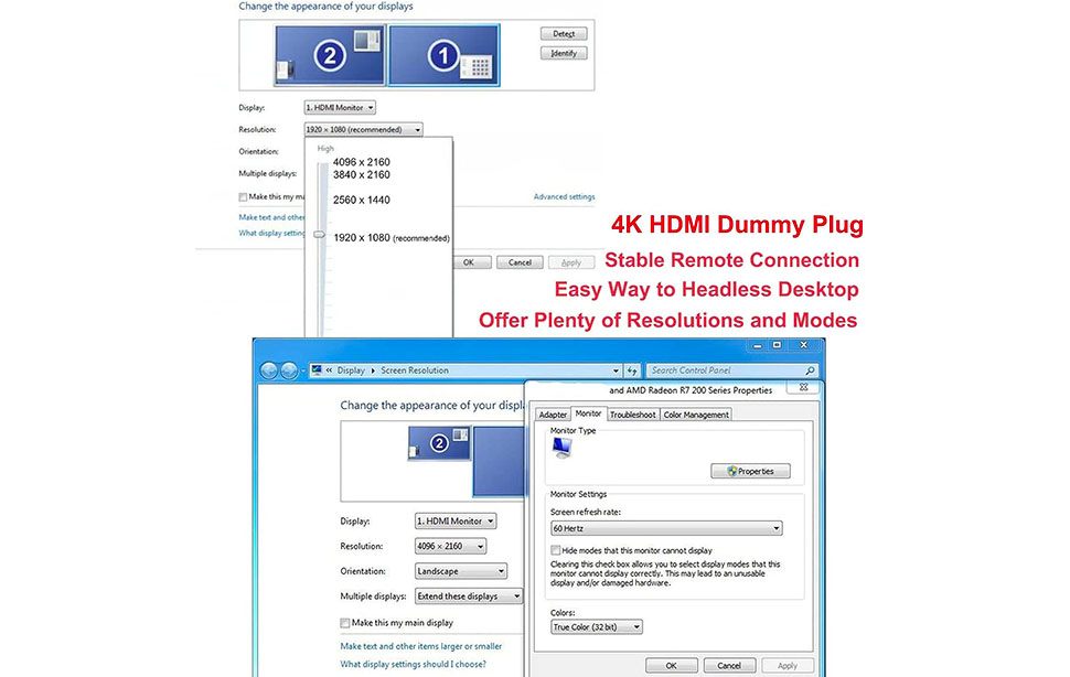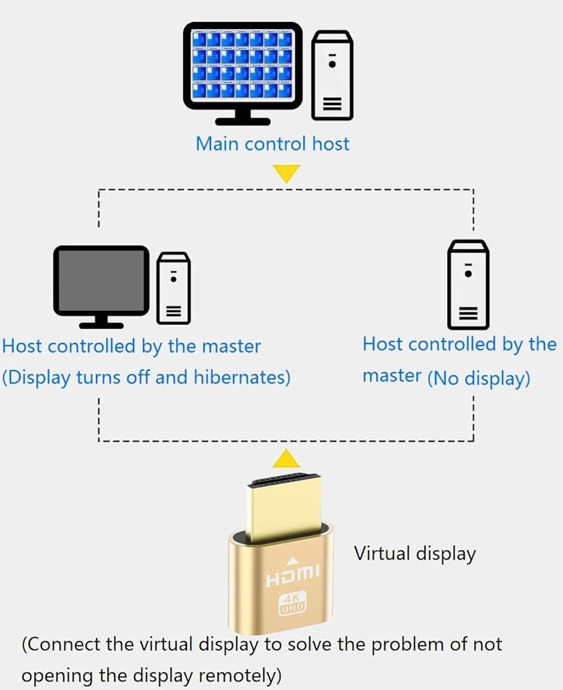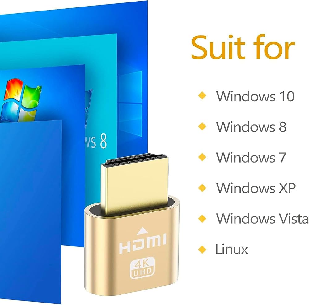 High Resolution: 4K HDMI dummy plug Can enable the PC to enable the GPU to create a virtual display to perform tasks,Simulate high resolution for remote control,Up to 4K@60HZ, compatible with 1080P-60HZ/120HZ, etc.