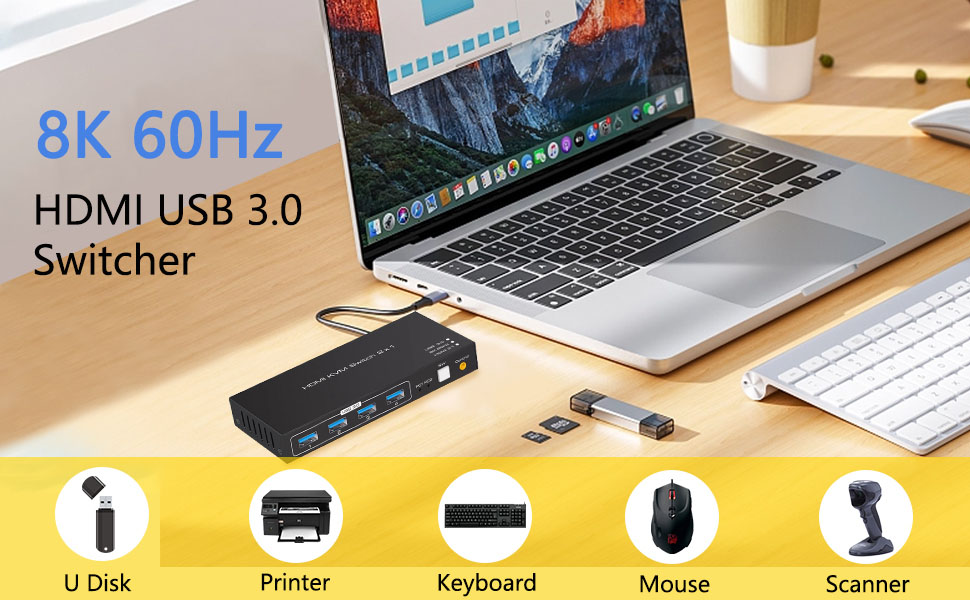 8K 60Hz KVM Switch Selector: It can display amazing UHD (Ultra High Definition) high quality video on displays (TV, projector, Monitor.) in a non compressed manner. Compared to a small screen of a computer, it is possible to enjoy videos on a large Ultra clear TV/monitor, brings you luxurious visual experience.