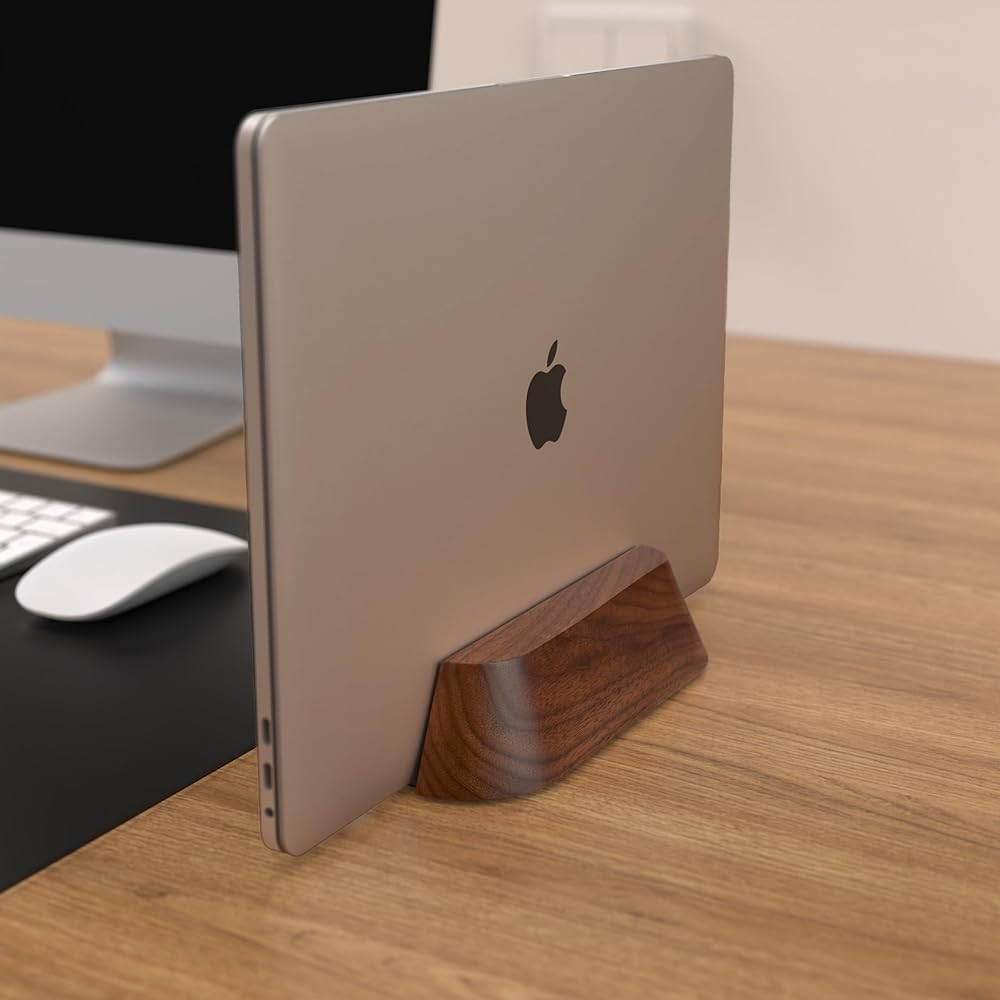 Handcrafted with Solid Wood and Leather: This vertical laptop stand combines the unique beauty of natural solid wood and high-quality leather, making it a perfect decoration for your office desk. Enhance your workspace and enjoy a pleasant working environment.