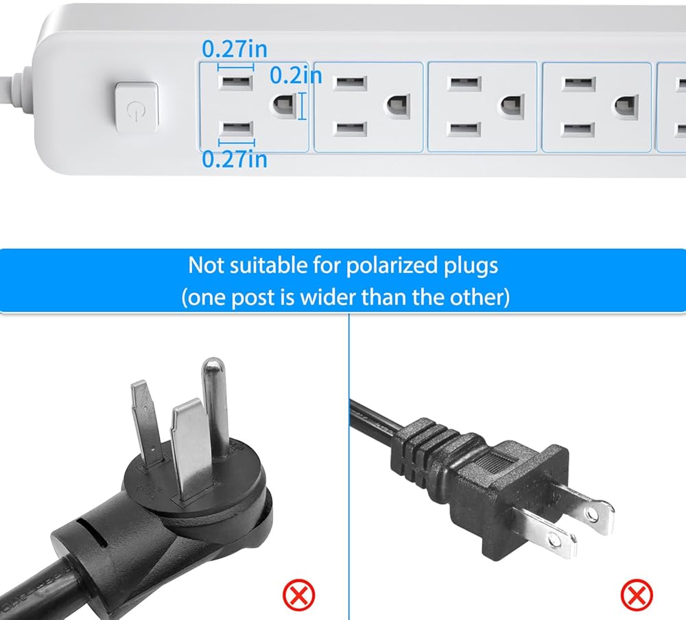 【Power Up to 5 Devices】5 grounded and protected 3-prong outlets provide power to everything on your desk from a distance. The large power rating of 1875W is compatible with many high-power devices. Perfect for your kitchen, office, bedroom.NOTE: This product will not work with polarized plugs (one post is wider than the other)