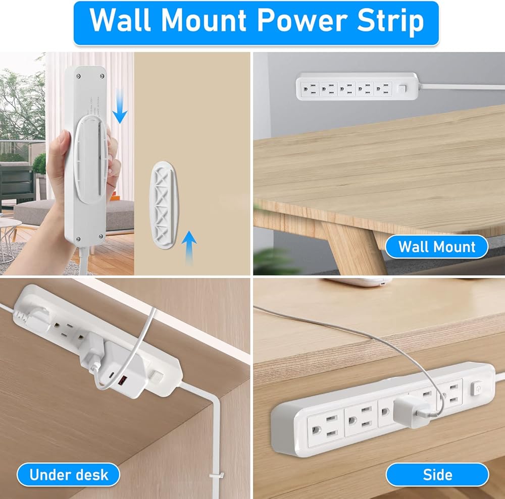 【Flexible mounting and detachable wall mounts】 This product comes with a set of sticky wall hanging components, you can install it on the wall, on the side of the desk, inside the cabinet, etc. wherever you want. The power board can be disassembled flexibly and placed where you want to use it. No need to spend extra money to buy extra power strips. Save your money.