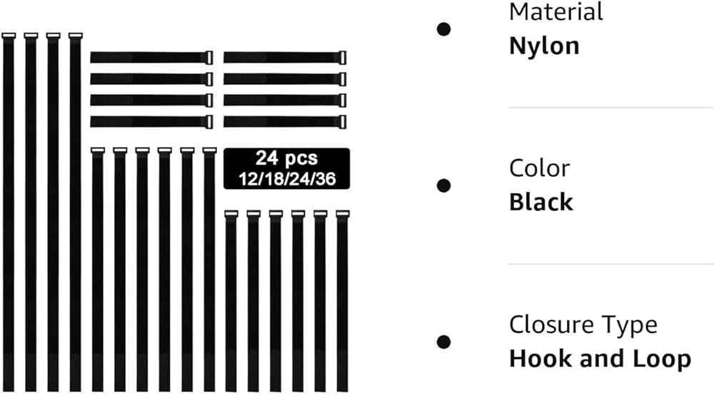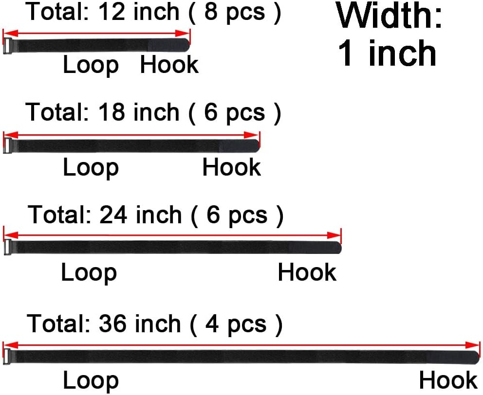 12"18"24"36" Cable Straps, 24 pcs Reusable Fastening Hook and Loop Utility Cable Ties Down Wraps Adjustable Cinch Straps