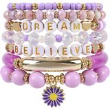 Bohemian Natural Stone Beaded Bracelets for Women Girls Stackable Stretch Beads Bracelet Set with Charm and Tassel Multilayered Elastic Gemstone Bracelets Summer Beach Boho Jewelry Gift for Women Men
