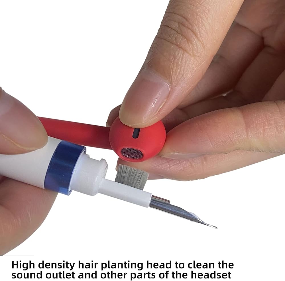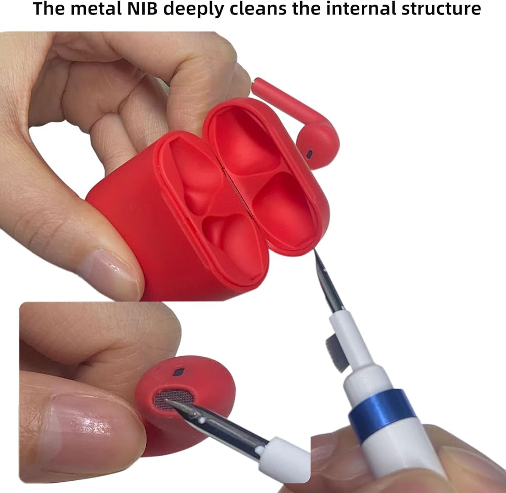 Introducing the Wanther 2-Pack AirPod Cleaner Kit, a comprehensive and multifunctional 4-in-1 cleaning set designed to effectively remove dust and stubborn dirt from your AirPods, AirPods Pro, and other electronic devices. This versatile kit includes a flocking sponge, soft brush, metal pen tip, and cleaning brushes to make your devices look like new again. The high-density fine brush easily removes debris from Bluetooth earphones, phones, cameras, and laptops, while the metal pen tip provides a strong grip for cleaning stubborn residues on keyboards, mice, and more. The integrated design features a metal ring for logo customization and a convenient grip. This compact and portable cleaning pen is perfect for use on a wide range of devices, including computers, keyboards, phones, cameras, and AirPods accessories. The kit comes with a 12-month free replacement or full refund warranty for your peace of mind. Package weight: 0.05 pounds; package dimensions: 5.5 x 1.0 x 0.5 inches. Note: When using the product for the first time, avoid touching the connection points with your hands. For a thorough cleaning solution, choose Wanther's AirPod Cleaner Kit.