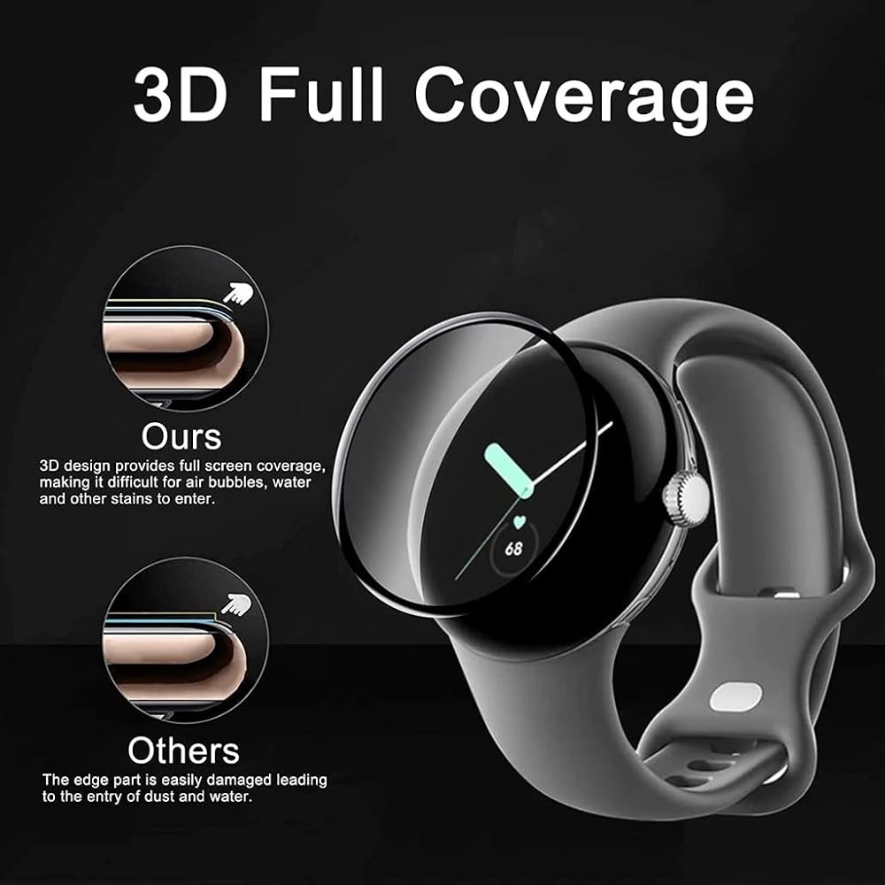 [3 Pack] Screen Protector Compatible with Google Pixel Watch, 3D Curved Full Coverage PET Soft Screen Protector for Google Pixel Watch Smartwatch [Scratch Resistant] [Bubble Free] (Not Tempered Glass)