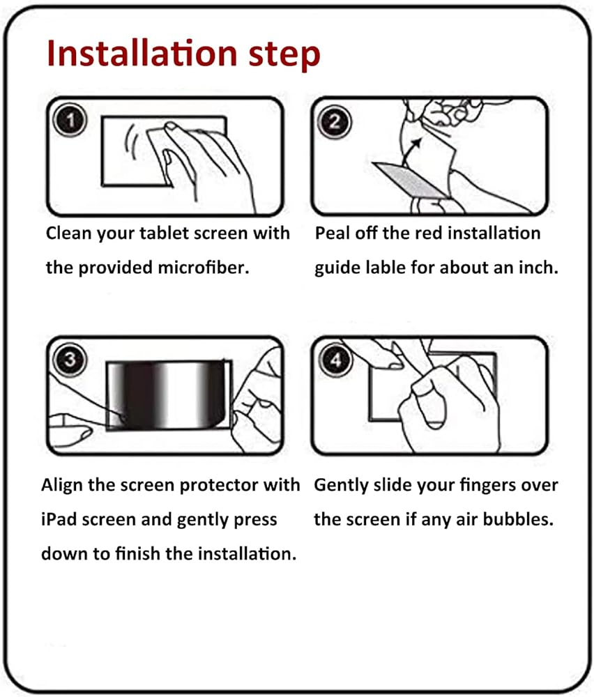 Repeatable Installation:If there is spot, bubble, or section that doesn't adhere,peel the iPad screen protector off and clear the spot,re-position it and it will stick to the screen again automatically.