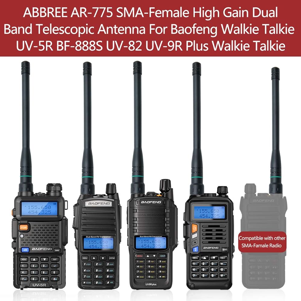 ABBREE AR-775 18.9 Inch Telescopic SMA-Female VHF UHF 144/430MHz Dual Band Antenna for Baofeng UV-5R UV-82 UV-9R BF-888S BF-F8HP Ham Two Way Radio