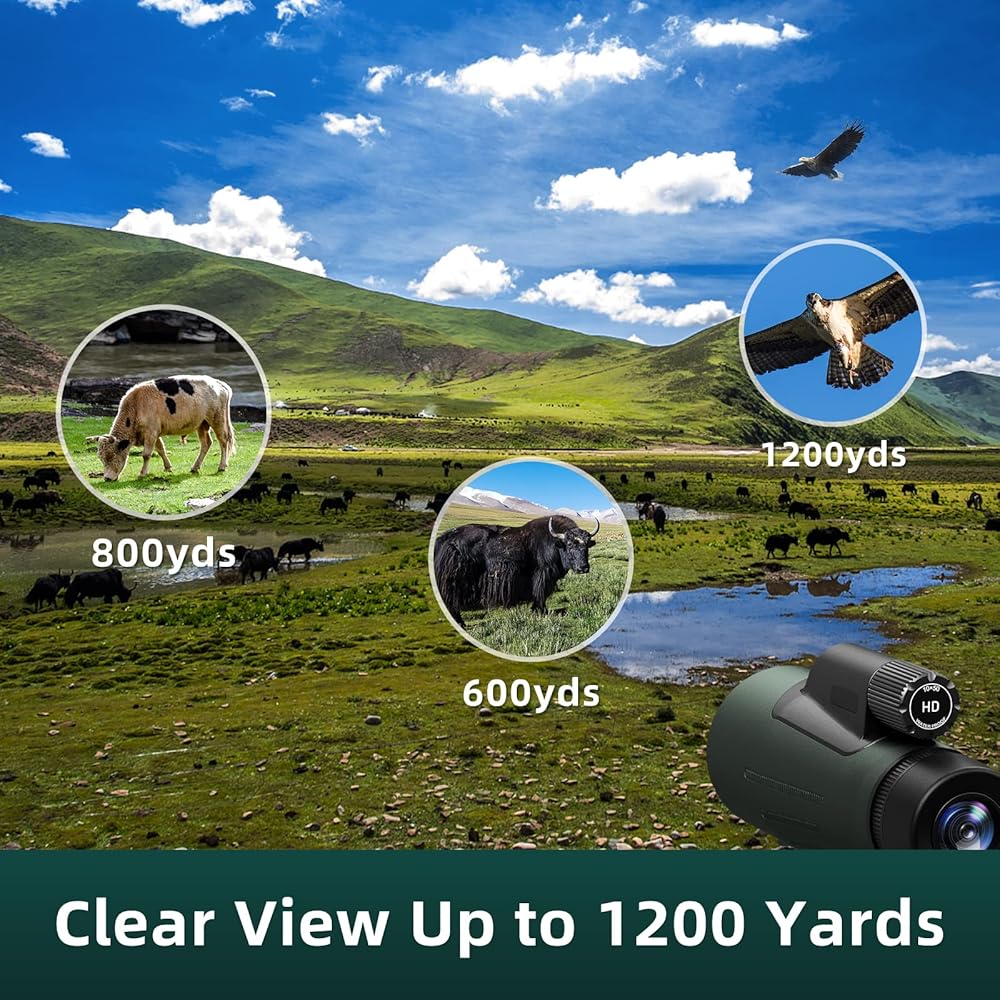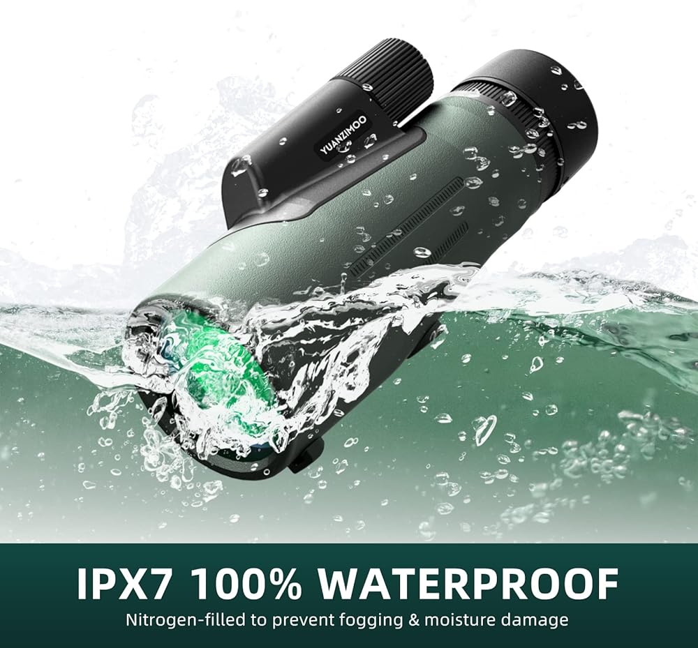 【IPX7 Waterproof & Shock Resistant】Nitrogen-filled waterproof and O-ring sealed optics monocular telescope ensure excellent waterproof and fogproof performance. Removable hand strap prevents the lightweight monocular from slipping from your hand, help you operate monocular with one hand easily. Scratch resistant and shock-absorbing rubber armor makes it exceptionally durable in all outdoor conditions