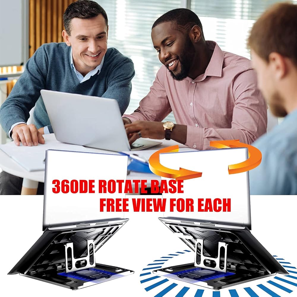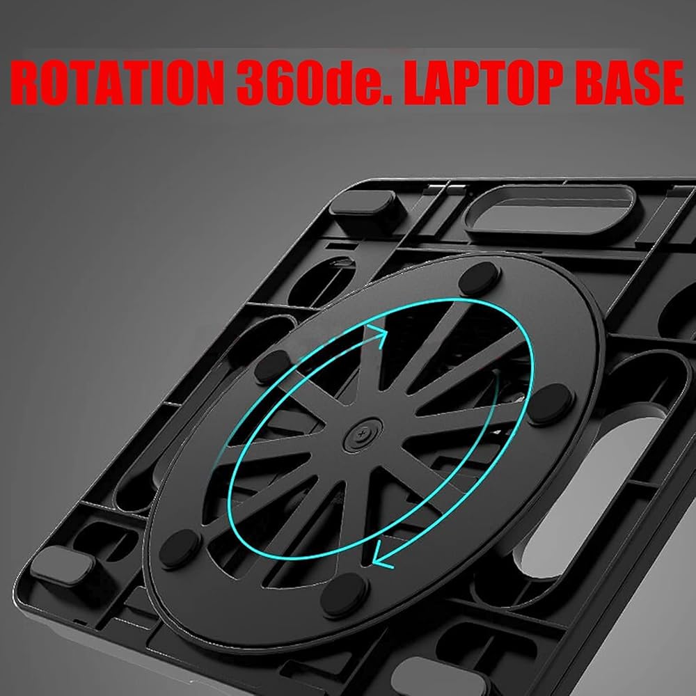 KEROLFFU Laptop Stand Cooler with Rotating Base 360degree,Phone Stand Include, Portable Foldable Laptop Riser for 10 to 17" Notebook (Suits MacBook/Air)