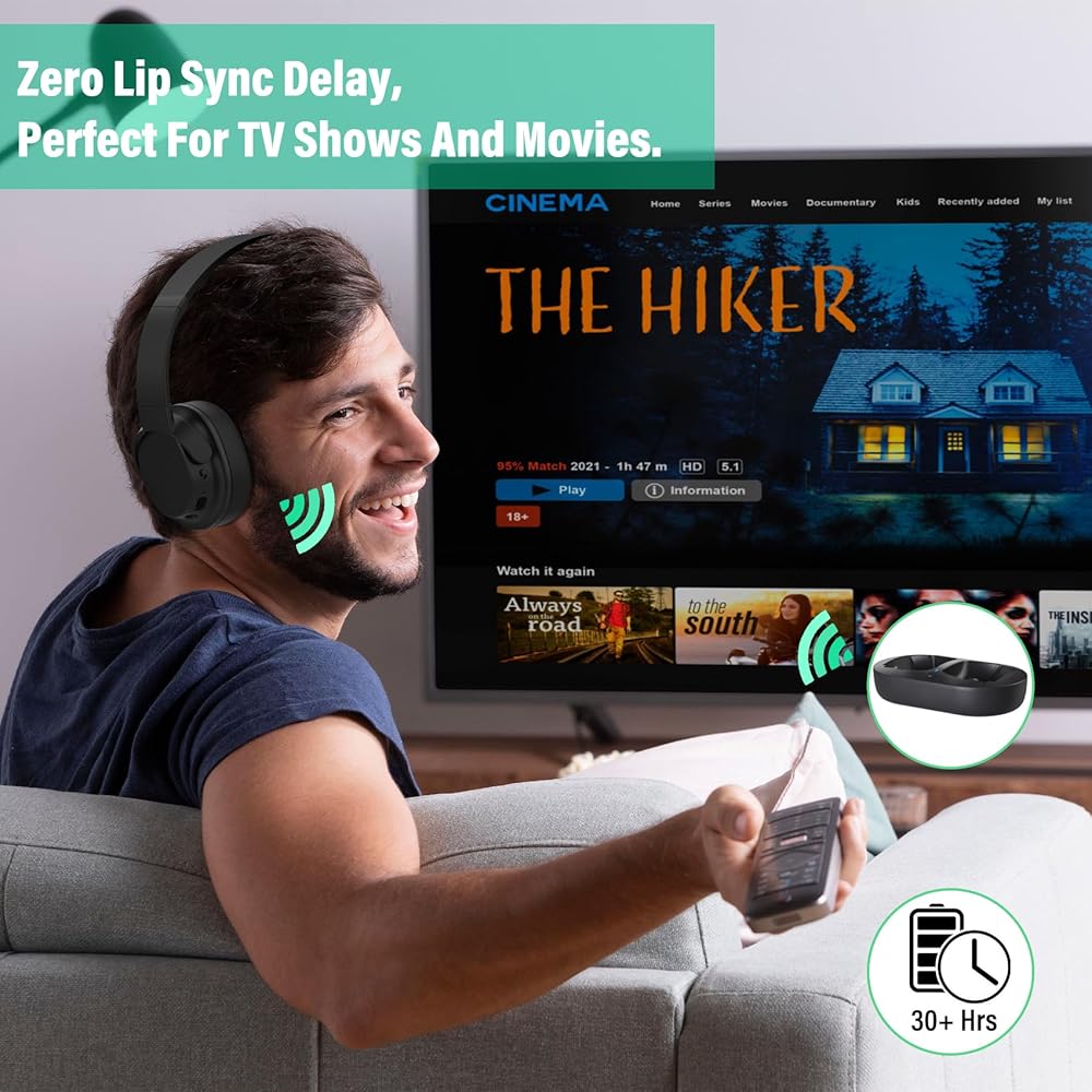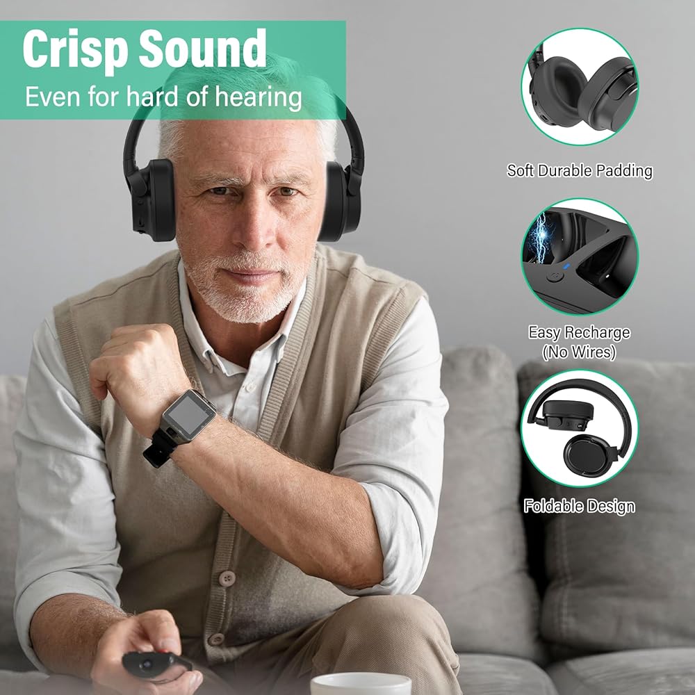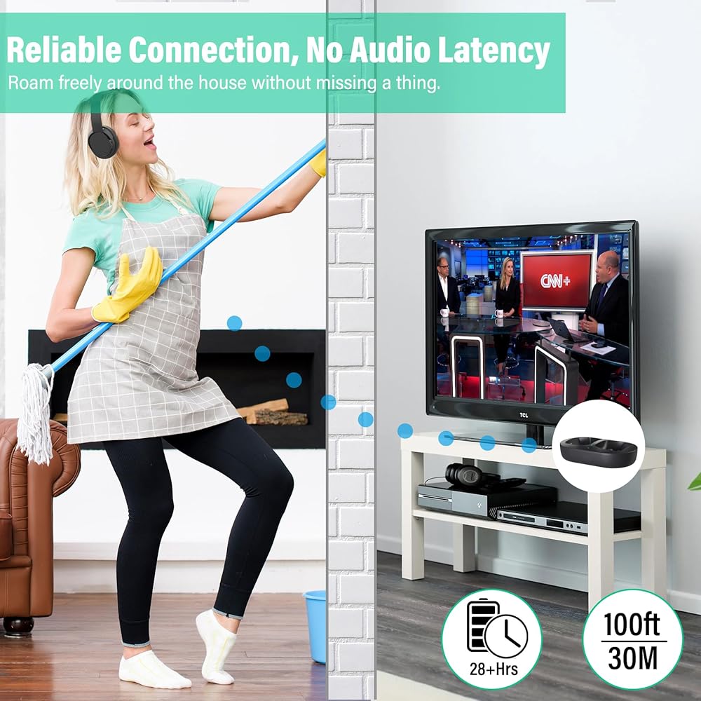 🔊【TV Headphones Wireless for Seniors】 With this wireless headphones, you can watch your favorite programs/movies at your own volume, and you won't disturb your family or neighbors anymore. The high volume is perfect for seniors with hearing impairment, making it the best wireless headphones for tv watching, It can last for 30 hours of battery life when fully charged, and is also the best companion for long-distance travel.