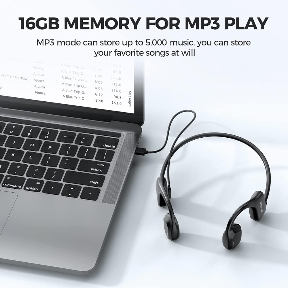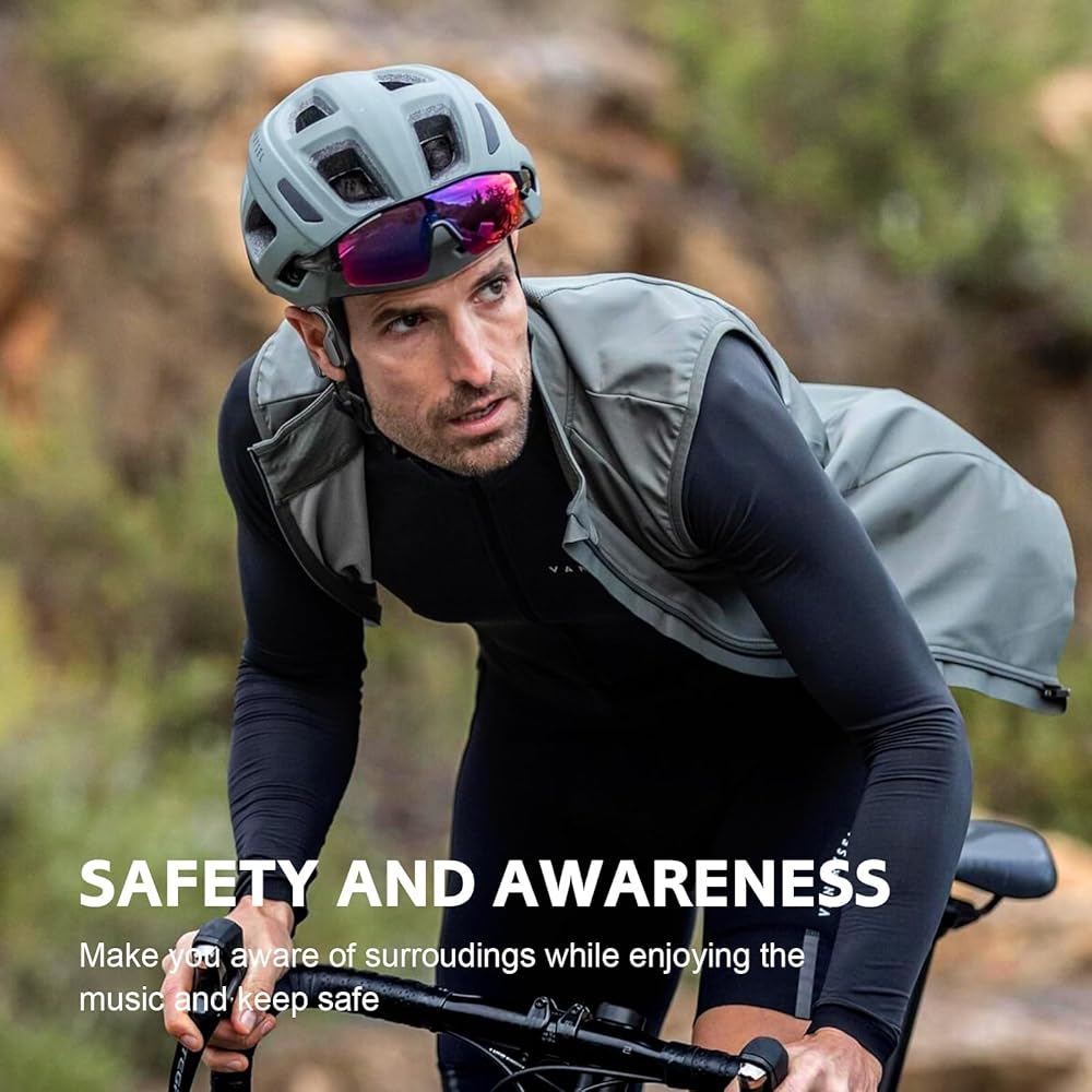 【Open-Ear Safety】Open ear headphones wireless bluetooth feature an open-ear design that doesn't need to be placed in the ear, bone conduction headphones delivers quality audio through the cheekbone, keeping you connected and aware of your surroundings. It's safer than traditional earbuds and over ear headset. Bone conduction headset bluetooth are suitable for everyone and all ages, whether you have long hair or wear glasses.