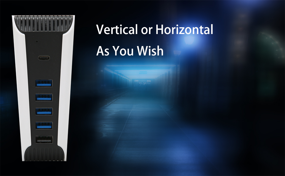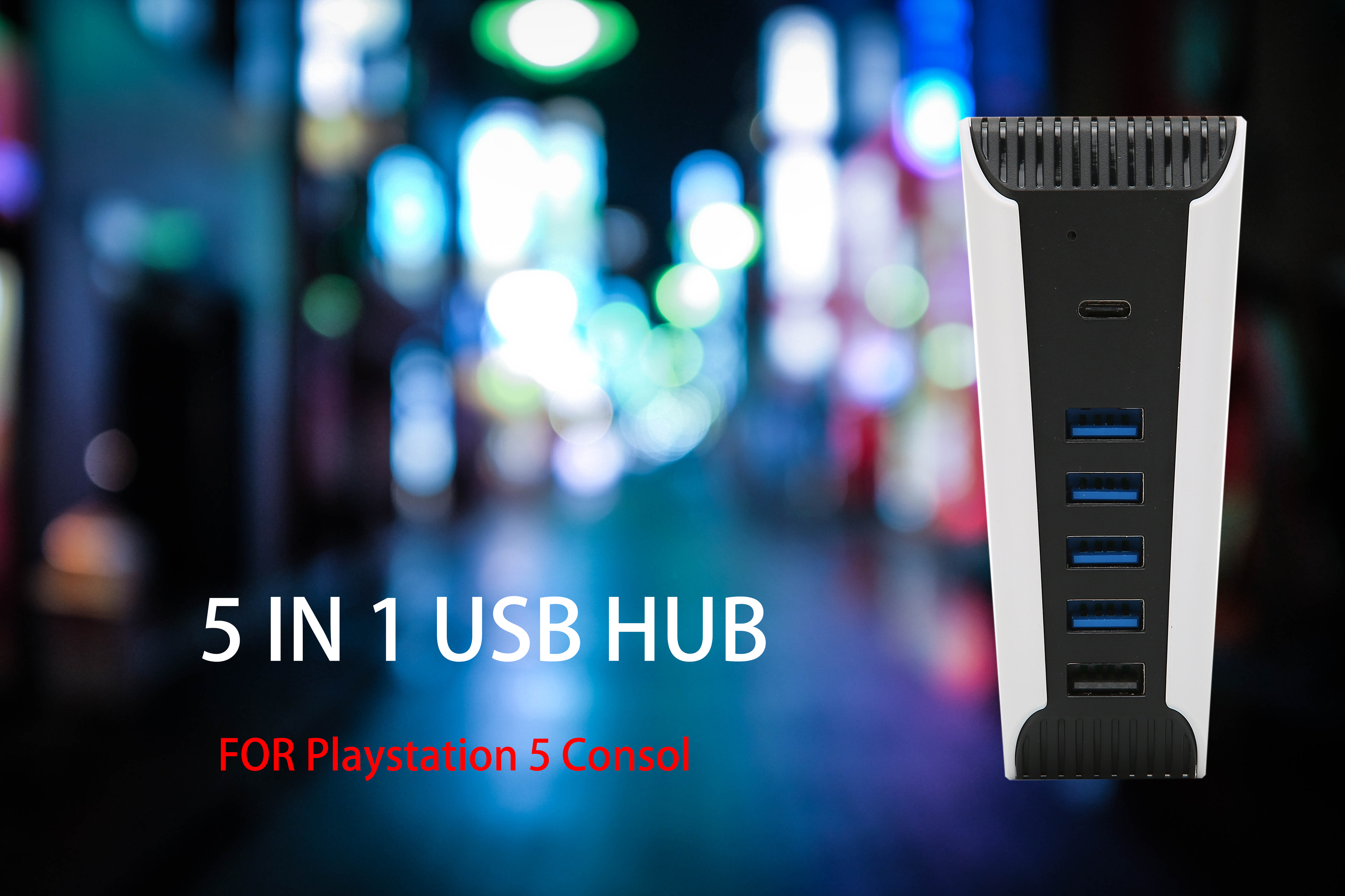 KOSDFOGE 5 in 1 USB Hub, High‑Speed Expansion Adapter with USB2.0 Type‑C Ports Compatible with PS5 Console Stable Transmission