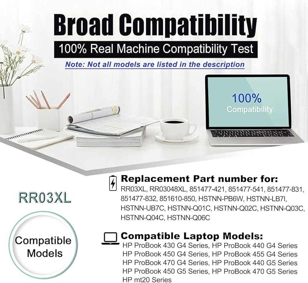 - 【Replacement for Part Number】RR03XL RR03048XL, HSTNN-PB6W HSTNN-LB7I HSTNN-UB7C, HSTNN-Q01C HSTNN-Q02C HSTNN-Q03C HSTNN-Q04C HSTNN-Q06C, 851477-421 851477-541 851477-831 851477-832 851610-850