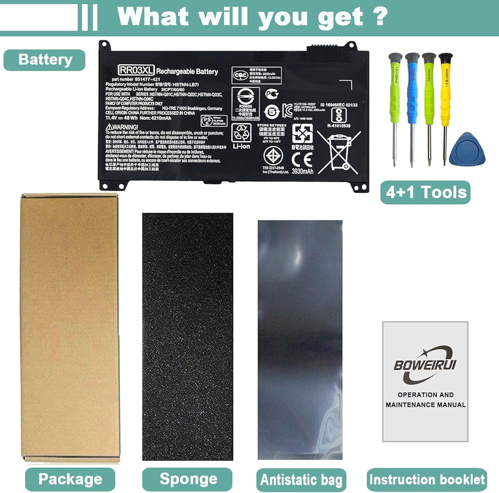 - 【Specifications】Battery Model : RR03XL** Voltage: 11.4V ** Capacity: 48Wh ** Type: Li-ion Battery