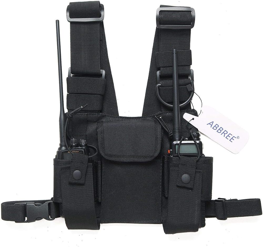 Abbree Front Pack Pouch Holster Vest Rig Radio Chest Harness Chest Bag Carry Case for Baofeng Two Way Radio Walkie Talkie UV-5R BF-F8HP UV-82 TYT Motorola Midland (Black)
