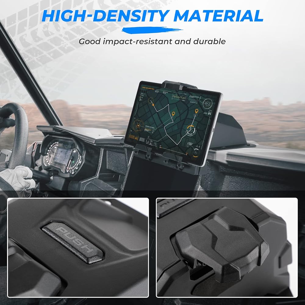 ADJUSTABLE CLAMP -KEMIMOTO electric device tablet holder is perfectly compatible with Polaris General 1000 & supported sizes of tablets and phones(1.5" wide, 5"-8 " high) and most of tablets phones(5.1" to 10" ) in place.