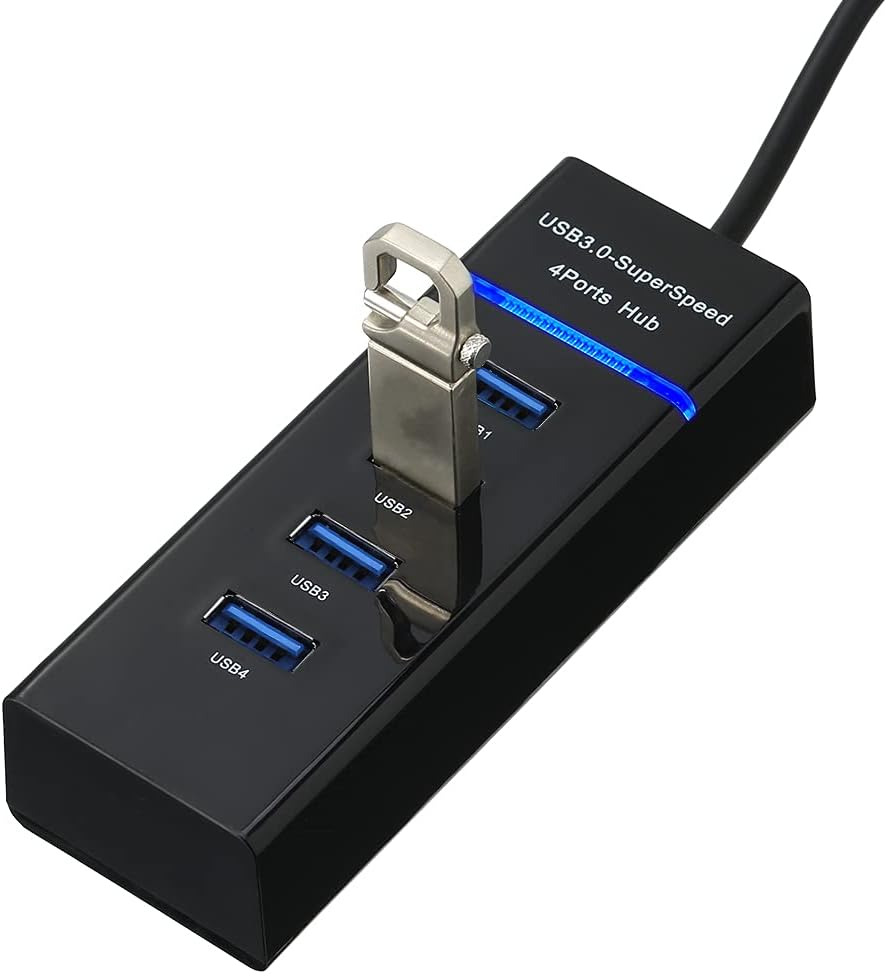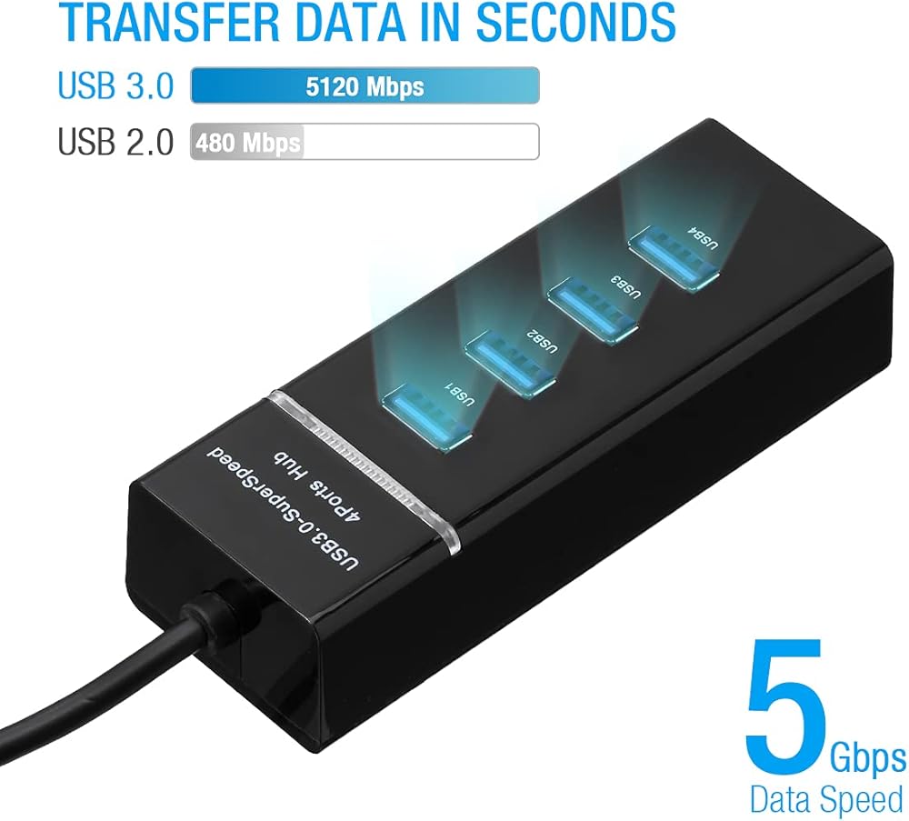 4-port USB 3.0 hub with super speed transfer rate up to 5Gbps.