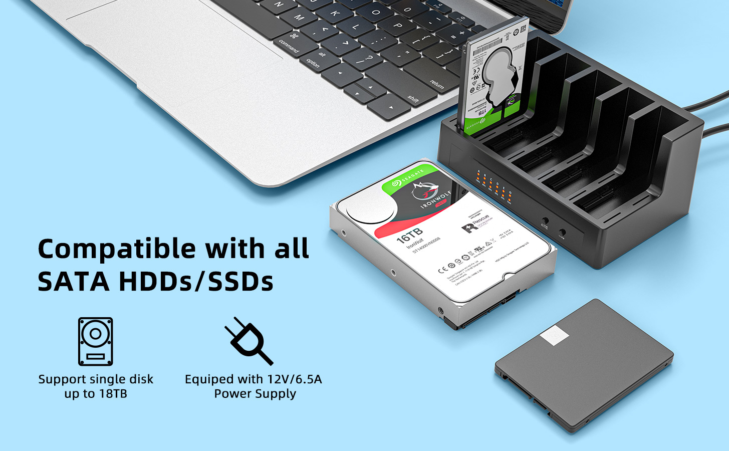 【Massive Storage Expansion】: This 5-Bay SATA hard drive docking station supports up to 90TB (5x18TB hard drives), compatible with 2.5"/3.5" SATA HDDs and SSDs. It's an ideal solution for IT data backup, batch processing, formatting, file transfers, data recovery, gaming data backup, and more.