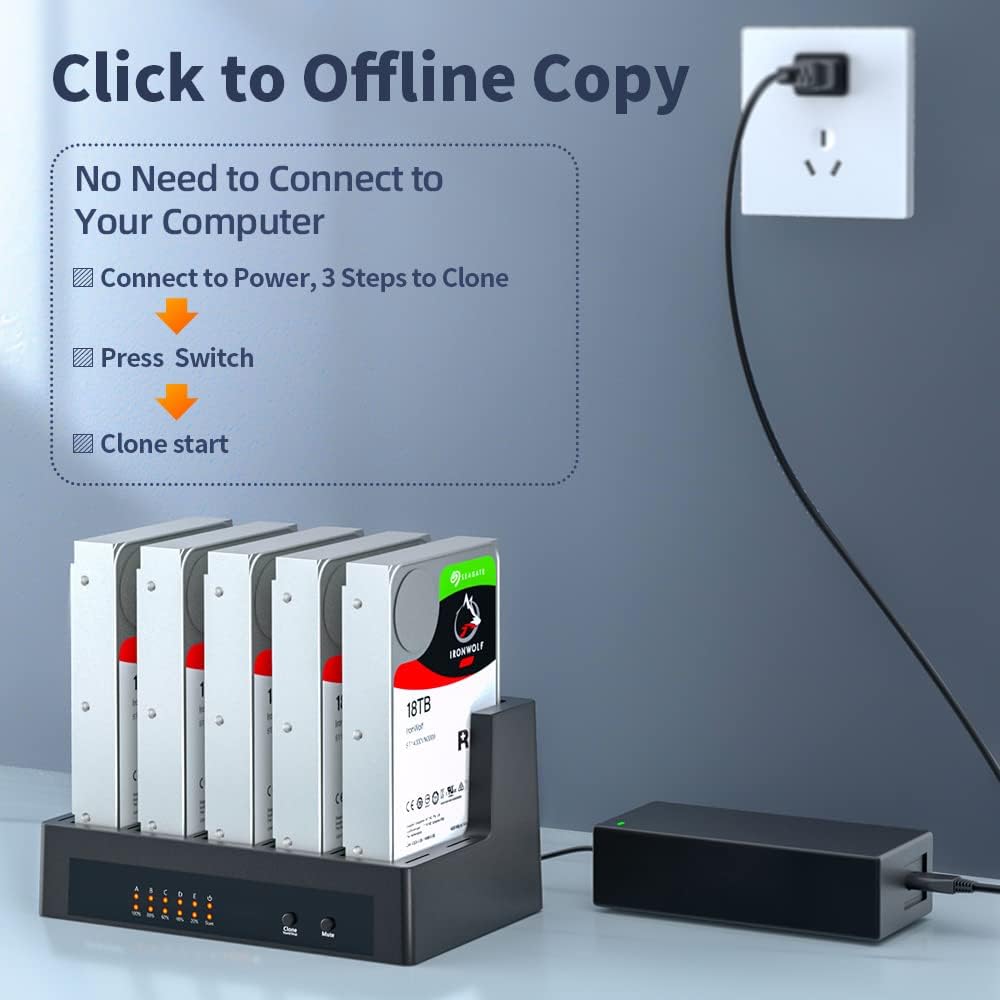 【Offline Cloning】: The SATA hard drive duplicator enables offline cloning from a source hard drive to a target disk without connecting to a computer. It also functions as external storage for data transfer between hard drives and your computer.