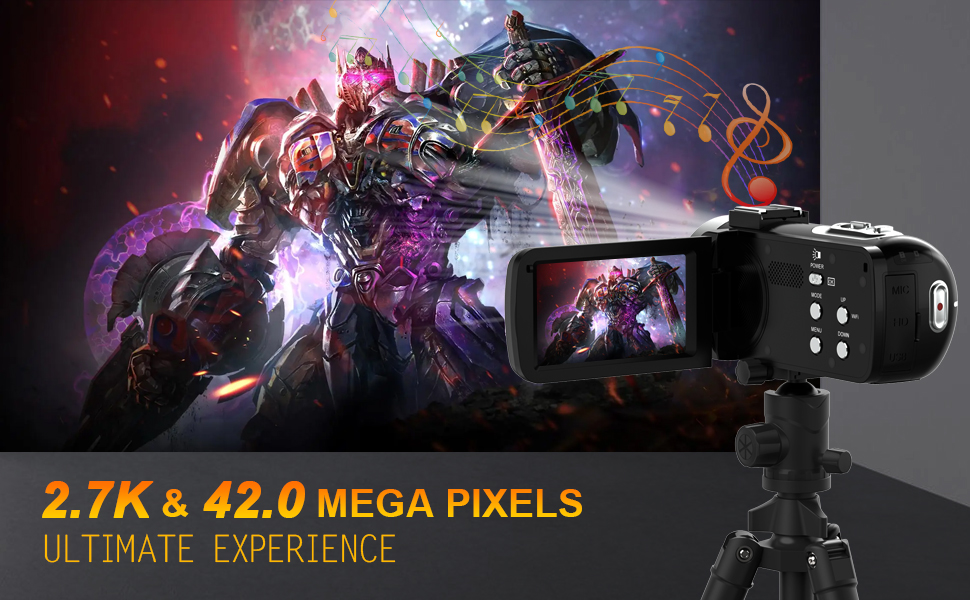 ☀【2.7K Multifunctional Camcorder】Full HD 30FPS(2688X1520) Video Resolution; 42MP Image Resolution; 18X Digital Zoom; Webcam Function; Time-Lapse Recording; Recording While Charging; Pause Function; Continuous Shooting; Self-Timer; Beauty Function; Face Detect; Smile Capture; Anti-Shake. 3.0 inch 270 degree Rotation screen This video camcorder has built-in microphone and it supports external microphone which enhances sound recording volume and reduces noise(Microphone Not included).