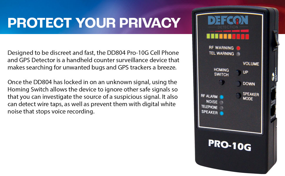 DefCon Security Products PRO-10G GPS Tracker Finder and Law-Grade Counter Surveillance Bug Sweep - Newest Professional Handheld Detection of All Active GPS Trackers, Mobile Phones