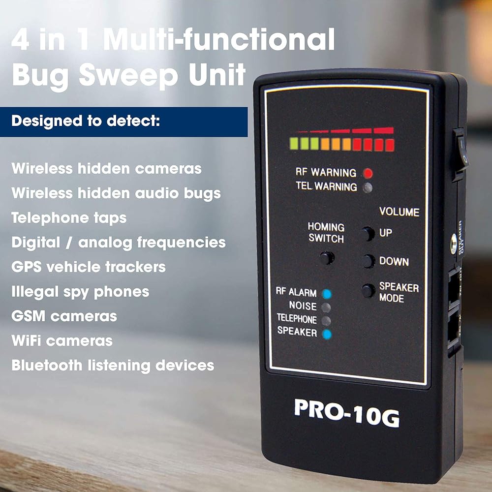 NEWEST UPGRADED MODEL RELEASE - COUNTER SURVEILLANCE BUG SWEEP is the # 1 SELLING PORTABLE SWEEP UNIT for CELL PHONE & GPS TRACKER DETECTION - Offers Outstanding Electronic RF Signal Detection - Sensitive Portable GPS Spy Bug Sweeper - INCLUDES White Noise Generator for Privacy - Finds GPS Active Trackers, ALL Hidden Transmitting Cameras, Phone Line Tap Detection