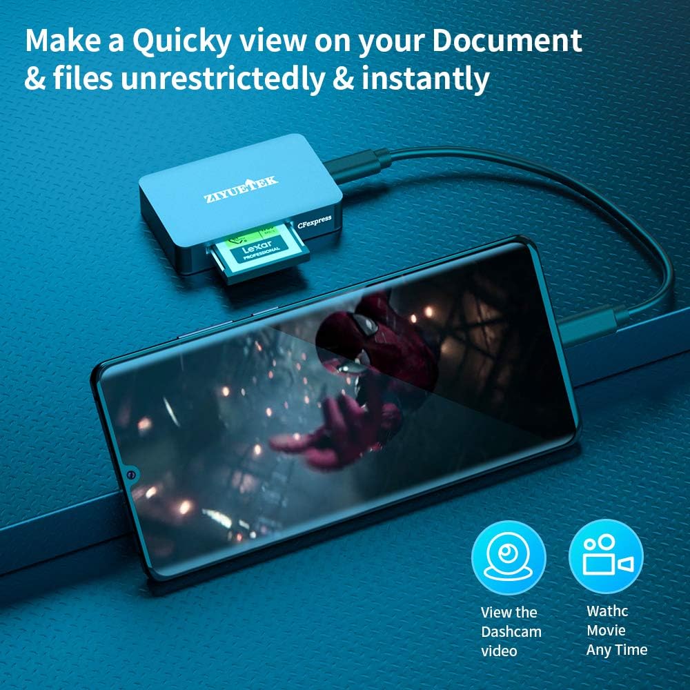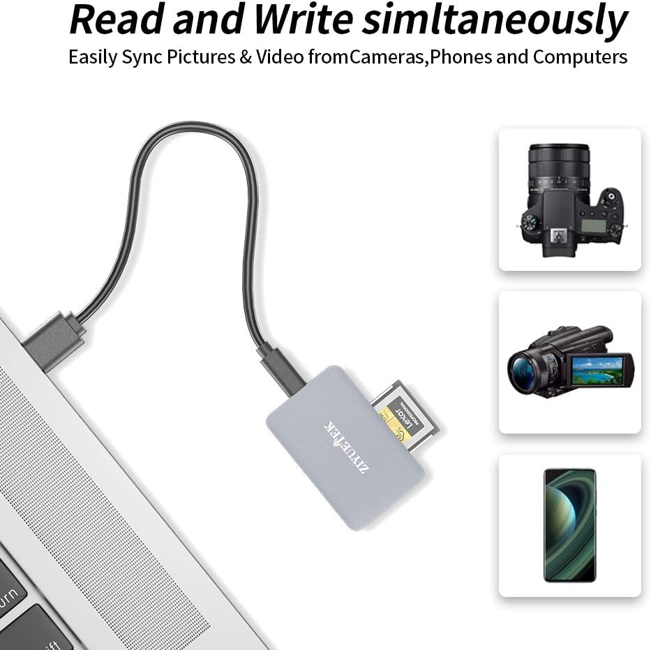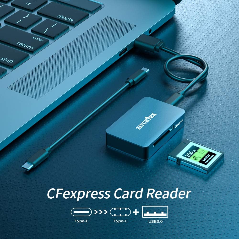 【Aluminum Compact Design】Ziyuetek USB3.1 GEN 2 CFexpress Card Reader with a compact portable design could save space and easy take. The aluminum alloy cover makes the CFexpress reader more durable and high quality.