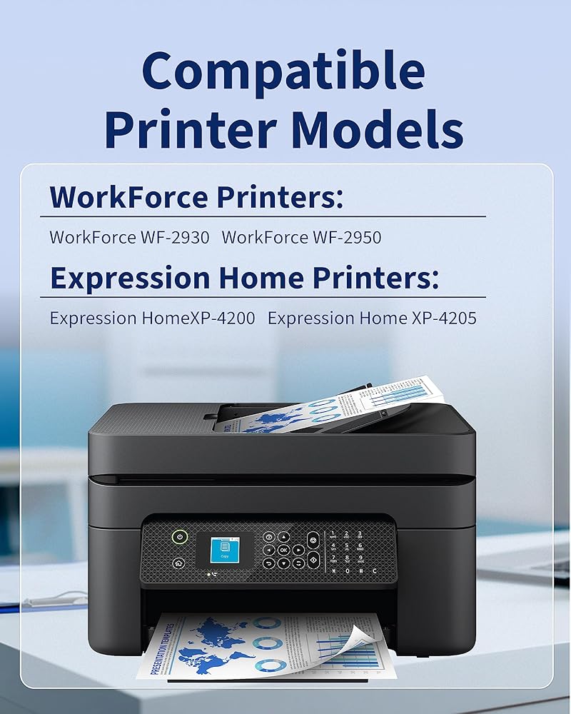 Compatible Printer Models: Compatible for WorkForce WF-2930, WorkForce WF-2950, Expression Home XP-4200, Expression Home XP-4205 Printers.