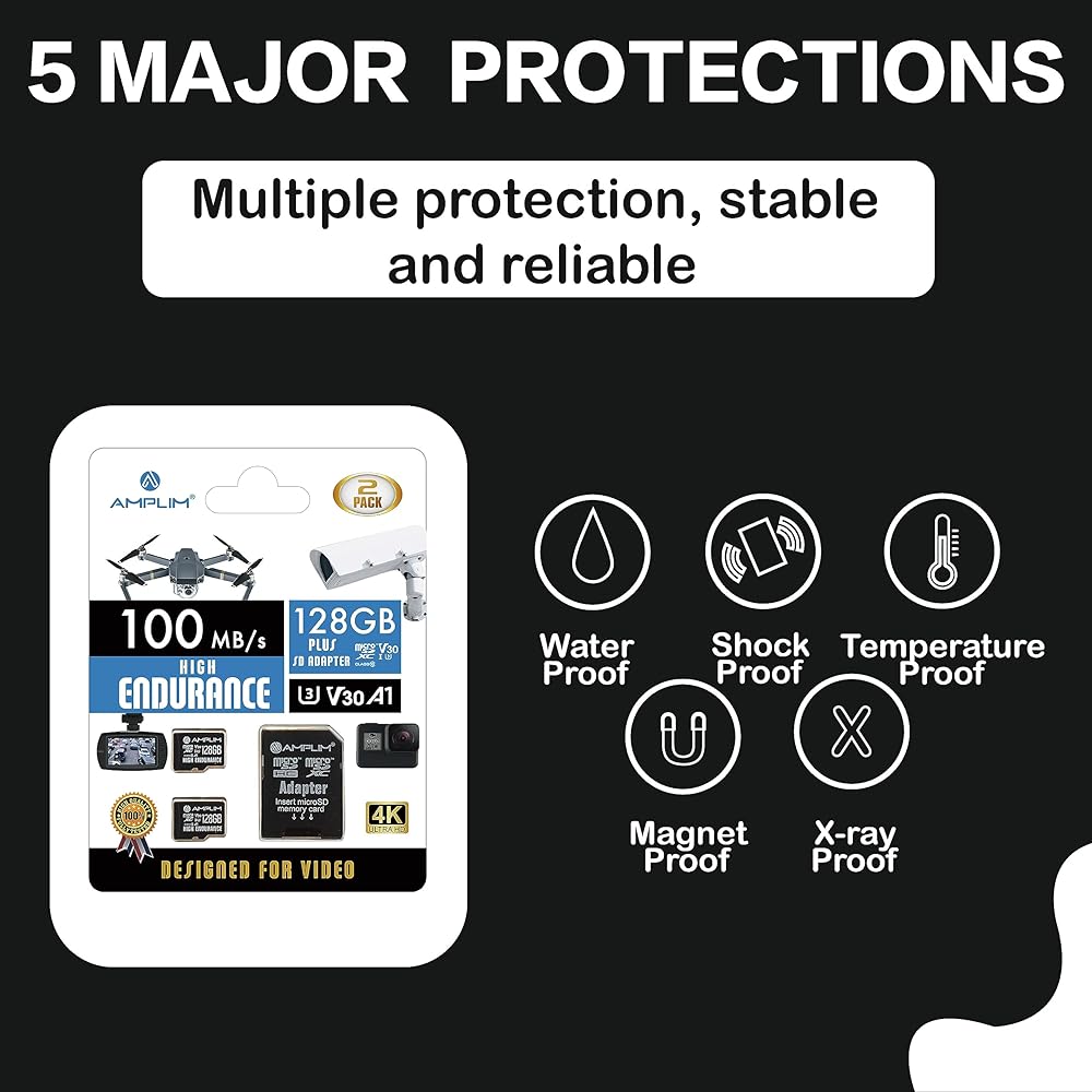 ULTRA HIGH SPEED: High endurance 667X 100MB/S Class 10 V30 A1 U3 UHS-I 4K UHD Full HD UHS-1 128GB microSDXC TF flash card. GENUINE: Meet or exceed SD Association SD 5.1 specs