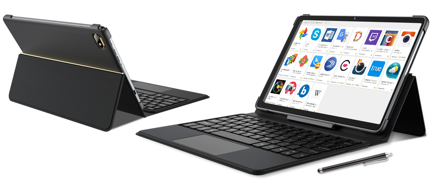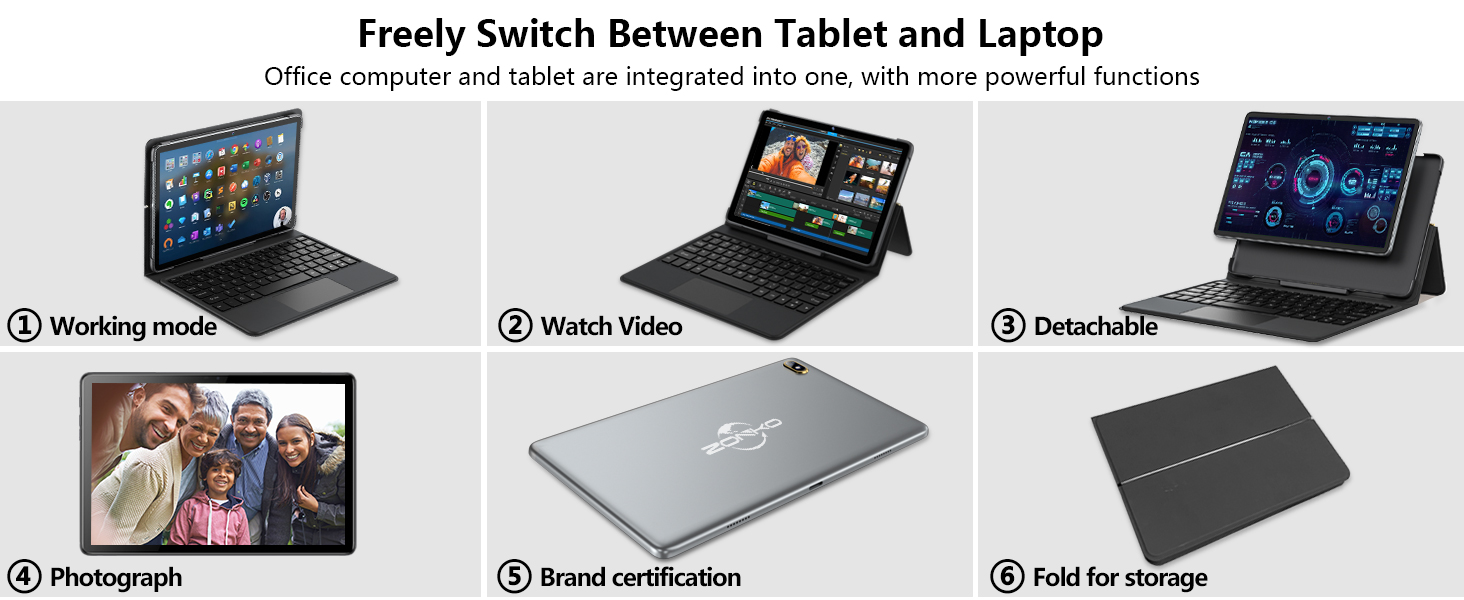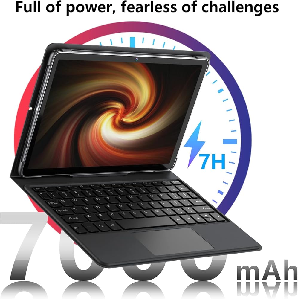 💻【【2-in-1 Design Tablet】10.1-inch android tablet with customized adjustable Detachable Keyboard case, powered by laptop-grade Octa core processor.The tablet designed for multitasking, making it easy to switch between different apps. Not only does it have the powerful performance of a laptop, but it can also be used as an ultra-thin portable PC tablet, allowing you to switch between laptop and tablet modes at any time.