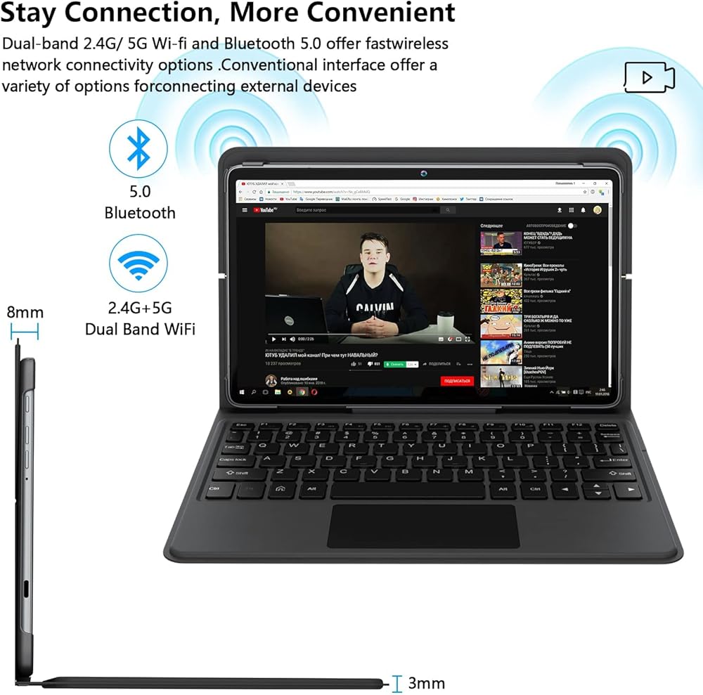💻【Stay Connected Everywhere】This laptop tablet is equipped with 2.4G+5G dual band WiFi and Bluetooth 5.0, make the tablet stay wireless network connection anytime. lightweight metal design( naked tablet Weighs only 1.1 pounds) make it possible for you to take it anywhere. Built-in 13-megapixel rear and 8-megapixel front cameras, making it easier to record wonderful moments and achieve clearer video chats. It will be a great gift for your family, friends or children.