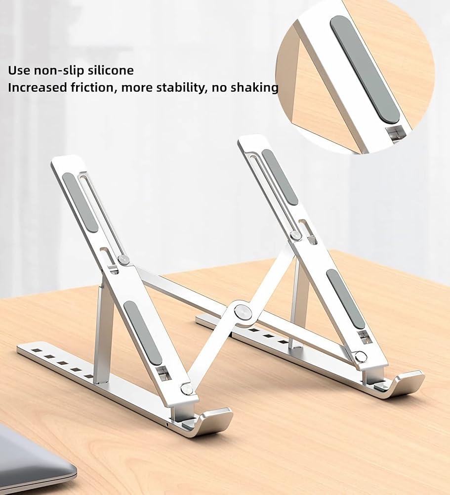 Desktop Laptop Stand, Multi Angle Adjustable Aluminum Laptop Stand, Ergonomic Laptop Stand, Fully Covered with Silicone Protection, Compatible with 10 to 15.6 inch laptops (Silvery)