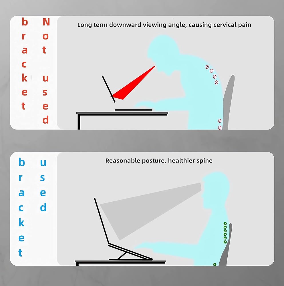 [Adjustable and Ergonomic]: Laptop stand provides 6 angles, allowing for comfortable viewing angle and height adjustment. The ergonomic design makes the laptop easy to operate and helps alleviate neck, shoulder, and back pain