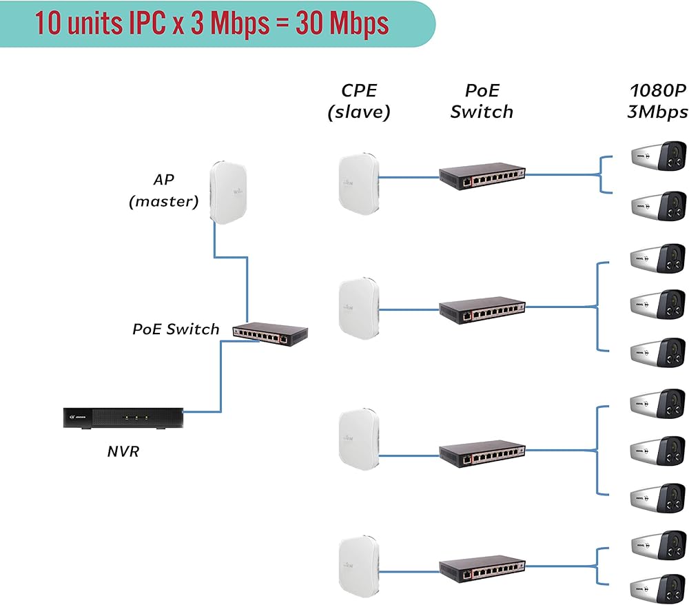 Easy Setup via DIP SwitchesTakes less than a minute to setup the devices for installationNo PC requiredNo network knowledge requiredReliable ConnectionPoint to Point or Point to Multi-pointSpeed up to 150MbpsRange up to 1.2mi48V PoE