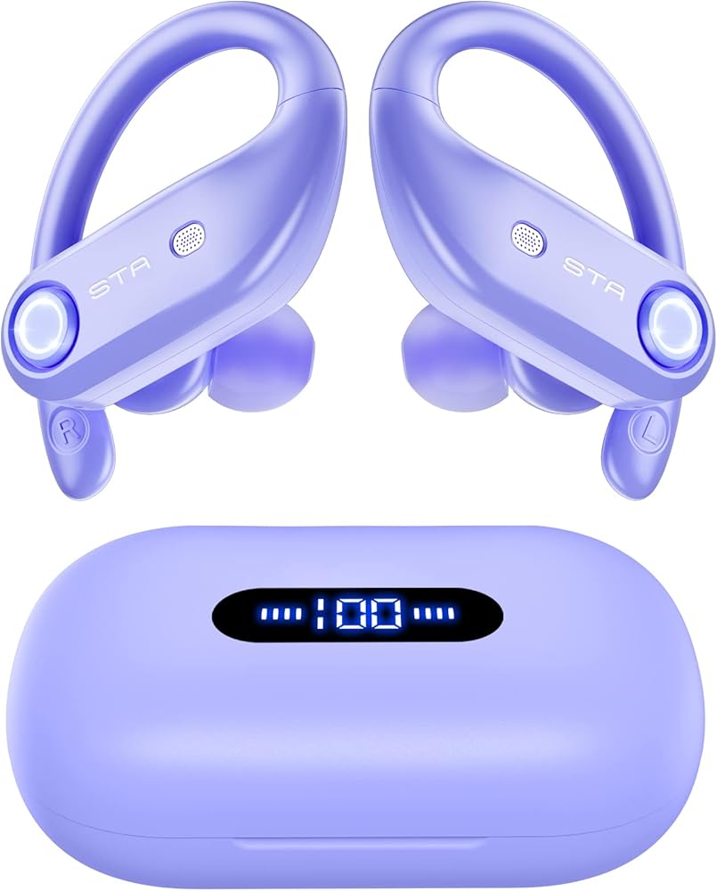 2. Large Capacity Wireless Charging Case with LED Display. Each wireless earbud can get 8H playback from a full charge. 2200mAh charging case gives up to 130H continuous music time. And the charging case can support usb c fast charging, and also be compatible with wireless charger.The dual digital LED power display outside of the case is to show the power level of the charging case, and whether the bluetooth wireless ear buds are fully-charged.