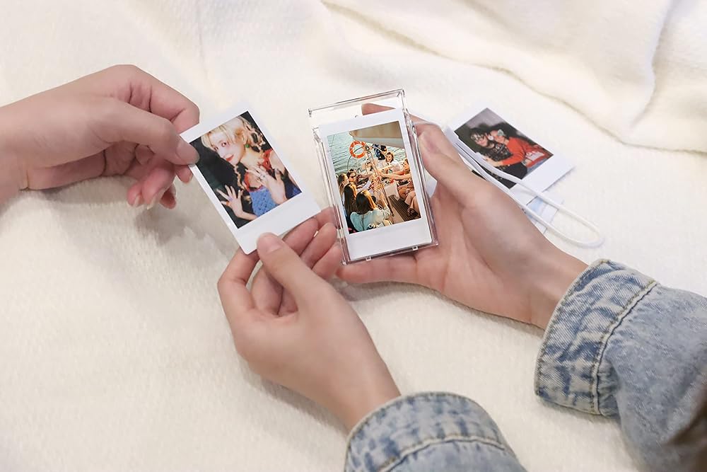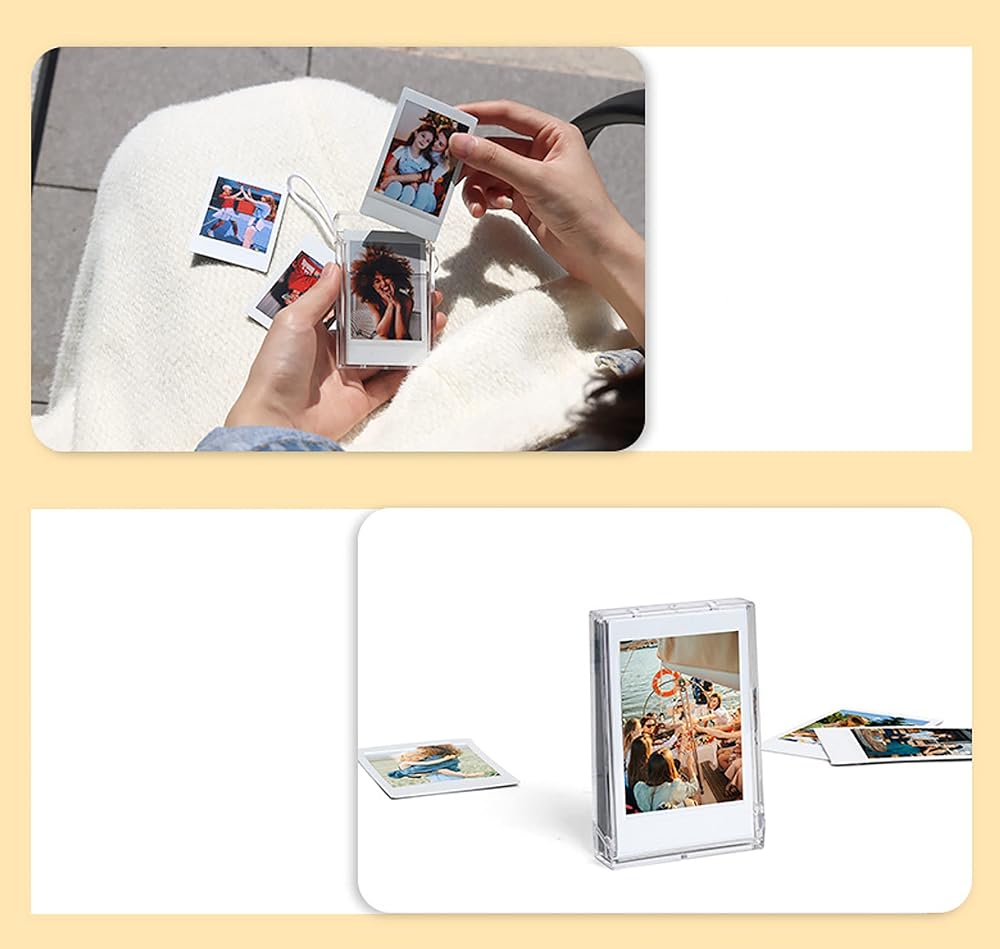 ✔ Unique design: Simple, compact, highly transparent, perfectly and clearly display your photos, can be placed anywhere, easy to carry out. Photos of your favorite family, friends, party events, and pets can be clearly displayed on the front or back. It is a combination of the mini photo frame and photo album that can easily display and hold 20 photos.