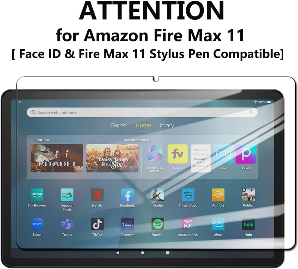 [2 Pack] Screen Protector for Amazon Fire Max 11,Tempered Glass Screen Film Guard for Amazon Fire Max 11 Screen Protector [ Face ID & Fire Max 11 Stylus Pen Compatible]