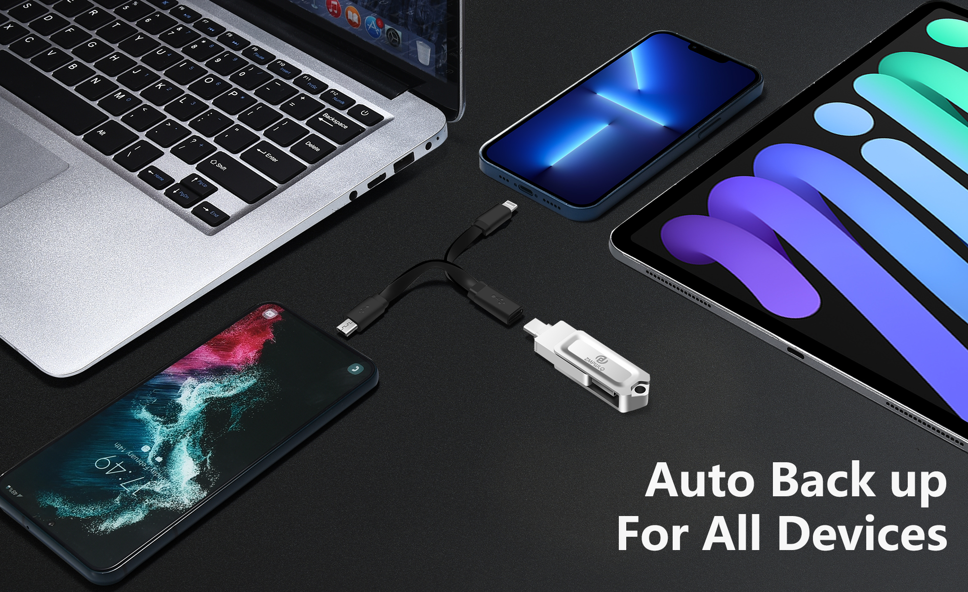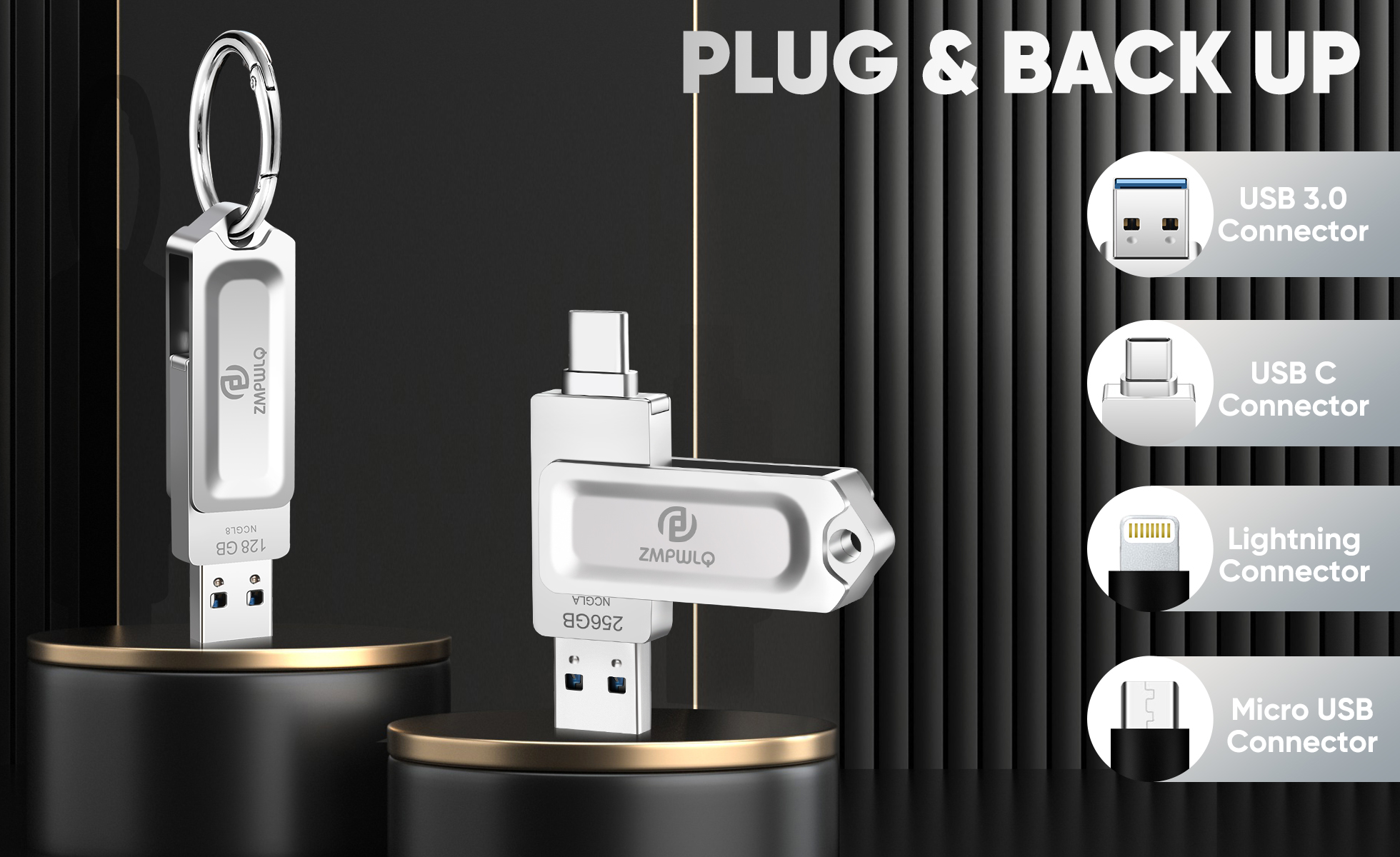 PL ZMPWLQ Auto Backup Adapter 128GB| Photo & Video Backup & Transfer| Photo Stick Data Cube| File Transfer & Photo Storage Device|Portable Memory| External Storage| Flash Drive for iPhone/iPad/Android