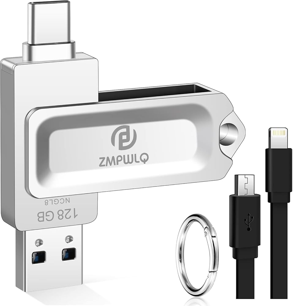 PL ZMPWLQ Photos-Stick 128GB for iPhone with Apple MFi Certified Photo Storage-External-Thumb-Drive USB-Flash-Drive-for-iPhone Backup Drive iPad Photo Device Memory Stick for iPhone iPad PC 1pcs