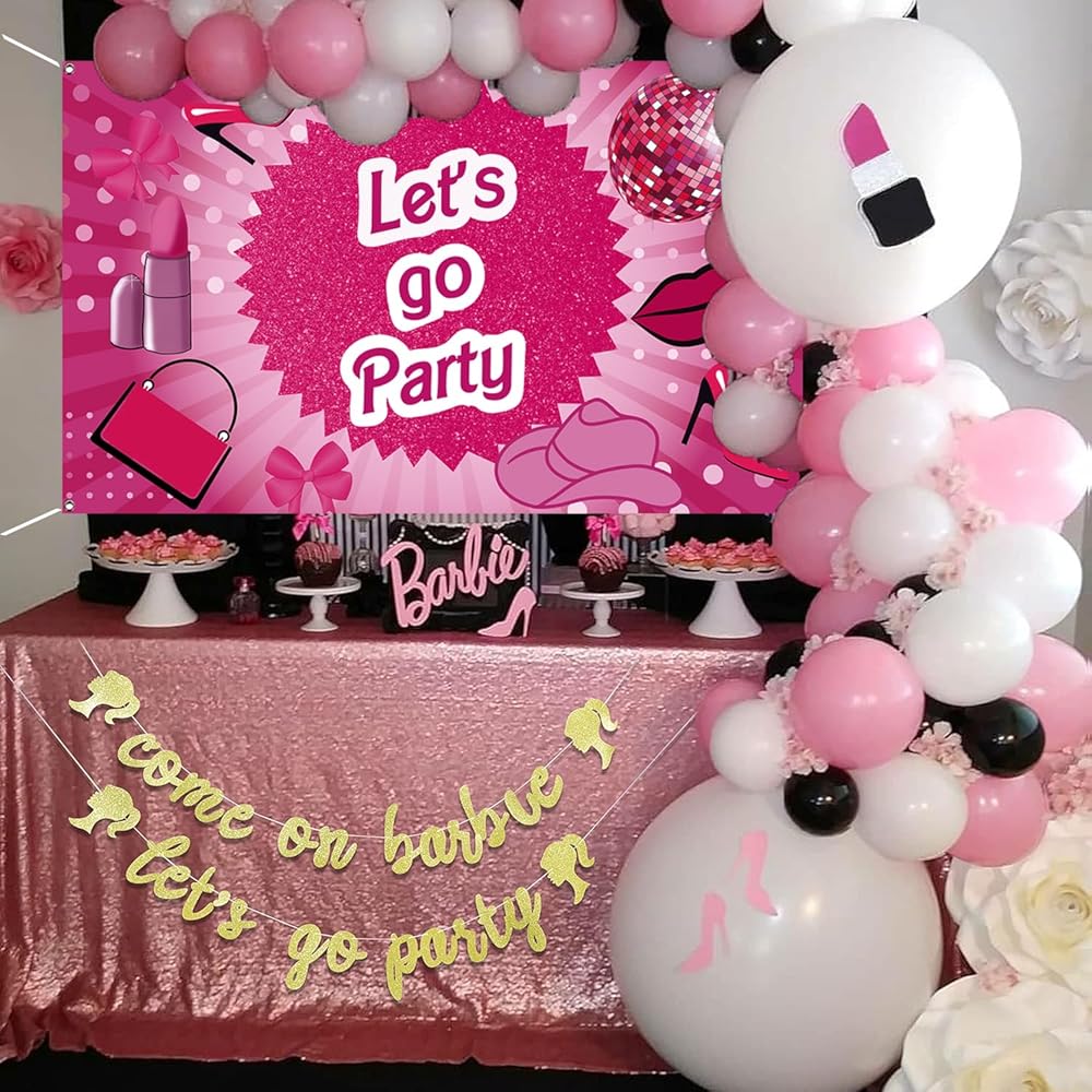 【Awesome Pink Girl Birthday Party Supplies】: You will get 1pcs 71''x43.3" hot pink let's go party banner, high-resolution digital printing with eye-catching details and true-to-life colors. No reflections or fading. Lightweight and easy to carry.