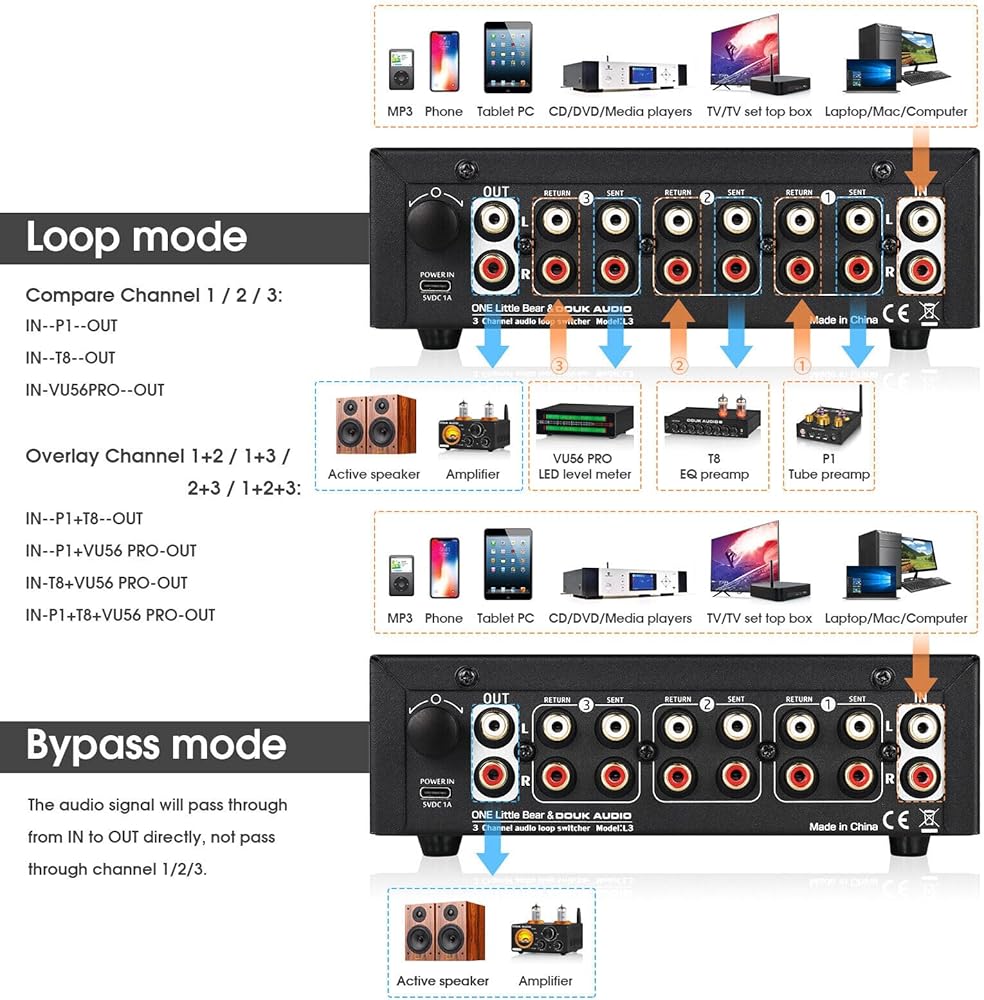 4. In bypass mode, the audio signal will pass through from IN to OUT directly, not pass through channel 1/2/3.
