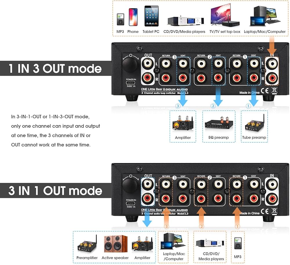 Work Mode: 1-IN-3-OUT/ 3-IN-1-OUT/ 3 channel Loop
