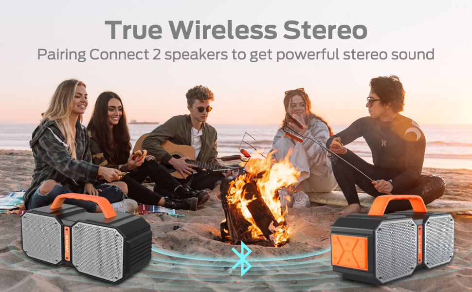 True Wireless Bluetooth Speaker - The latest Bluetooth 5.2 wireless speakers provide faster connection speed, more stable signal transmission and lower power consumption. Easily connect with your phones, Easily pair two portable speakers, Upgrade 100W stereo surround sound immediately.