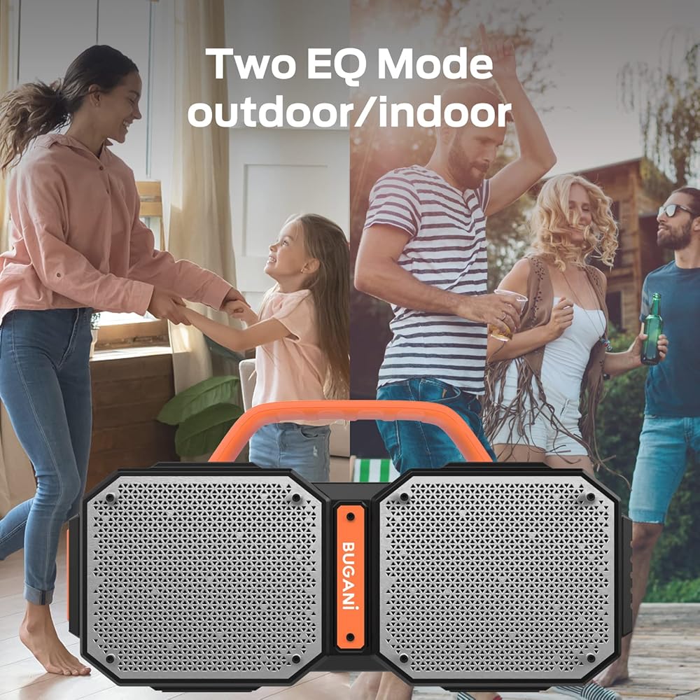 What You Get-1 BUGANI waterproof Bluetooth speaker, 1 Micro USB Charging Cable, 1 AUX cable, 1 quick start guide and lifetime technical support. BUGANI Speaker two EQ modes, whether you are indoors or outdoors, bring your favorite music, sports, movies, and programs to your backyard barbecue, beach party, pool party, dance party, party, picnic, camping and hiking trip . The fun never ends.