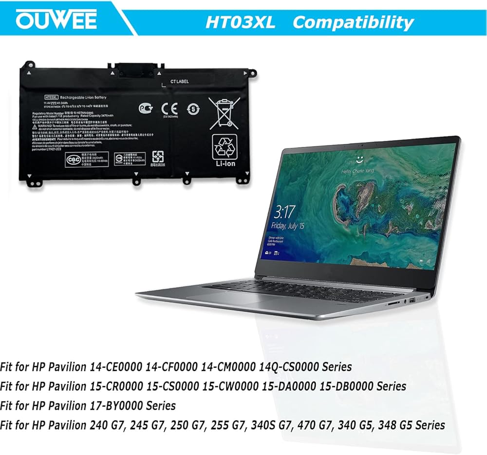 HT03XL Battery for HP L11119-855 Pavilion 15-DA 15-DB 15-DW 15-CS 15-DY 17-by 17-CA 14-CE 14-CF 14-DF 14-DQ 14-DK Series 15-CS0053CL 15-DA0014DX HSTNN-UB7J 11.55V 41.9Wh