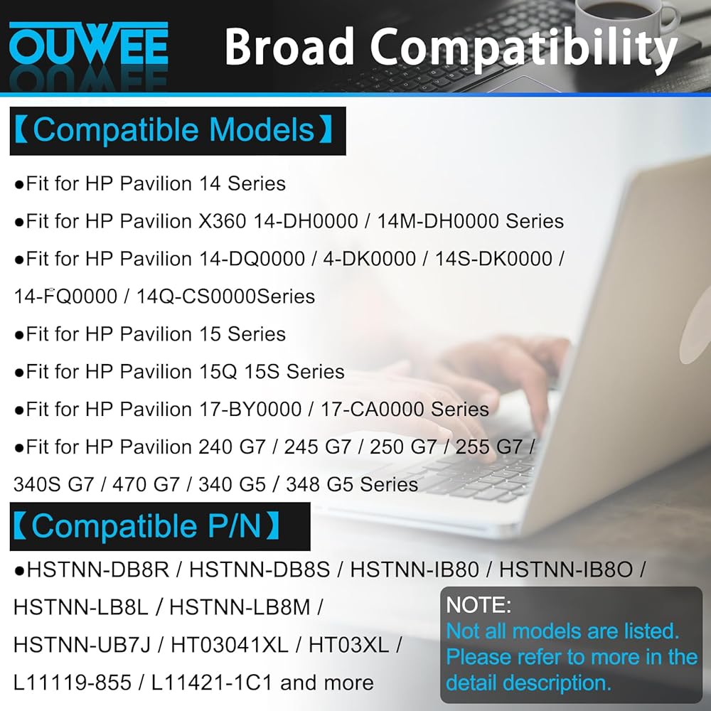 ⭐Compatible for HP Pavilion 240 G7, 245 G7, 250 G7, 255 G7, 340 G5, 348 G5 Series ; P/N: HSTNN-DB8R HSTNN-DB8S HSTNN-IB80 HSTNN-IB8O HSTNN-LB8L HSTNN-LB8M HSTNN-UB7J HT03041XL HT03XL L11119-855 L11421-1C1 L11421-1C2 L11421-2C1 L11421-2C2 L11421 -2C3 L11421-2D1 L11421-2D2 L11421-421 L11421-422 L11421-423 L11421-542 L11421-544 L11421-545 TPN-C136 TPN-I130 TPN-I131 TPN-I132 TPN-I133 TPN-I134 TPN-Q207 TPN-Q208 TPN-Q209 TPN-Q210