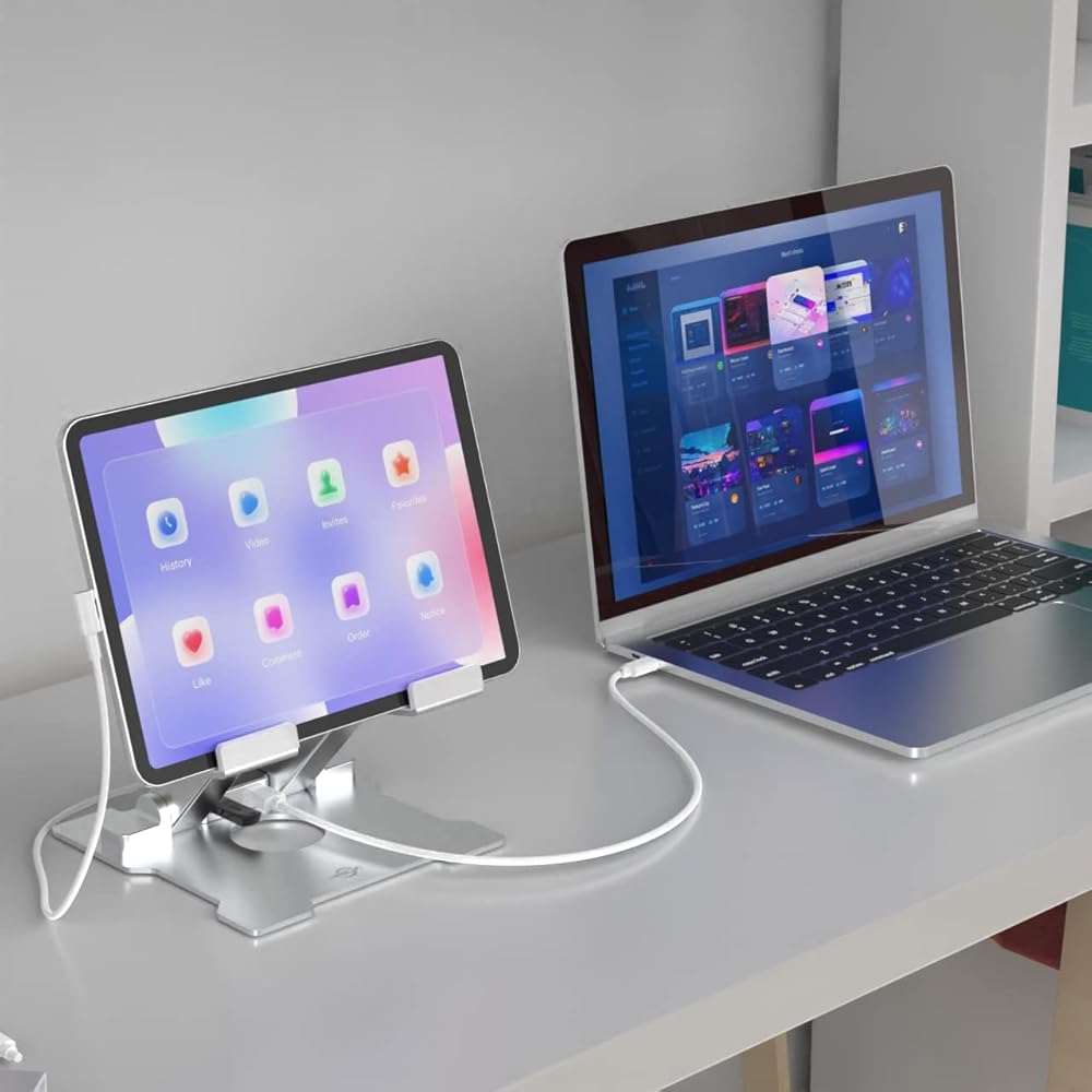 ✅【SMART LIFESTYLE】 Perfect for playing game, watching videos, viewing photos, reading, typing, video recording,working ETC. Suitable for use this tablet stand at office home for desk and your tablet as a desktop/dock