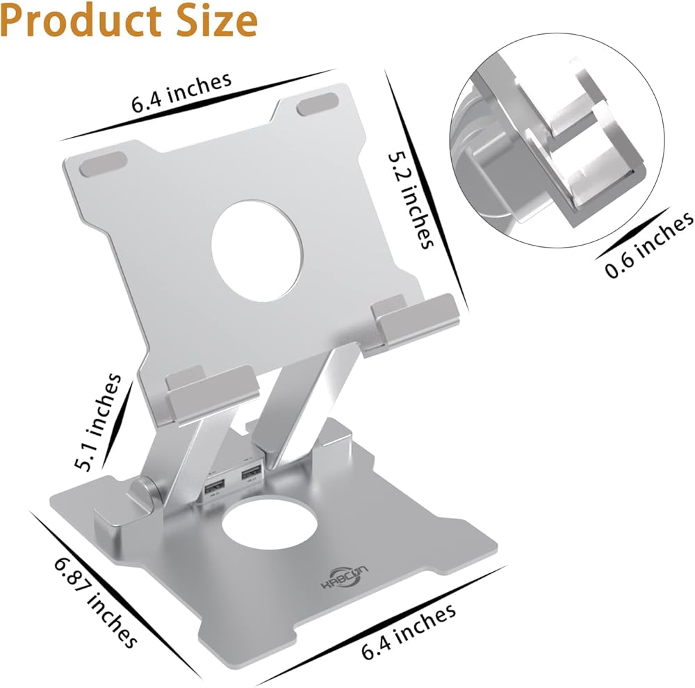 KABCON Tablet Stand with Hub, Adjustable Desktop Holder with USB 3.0 2.0 USB C 2.0 PD Docking Station for iPad Pro Air, MacBook Pro, Microsoft Surface, Tabs Up to 15''