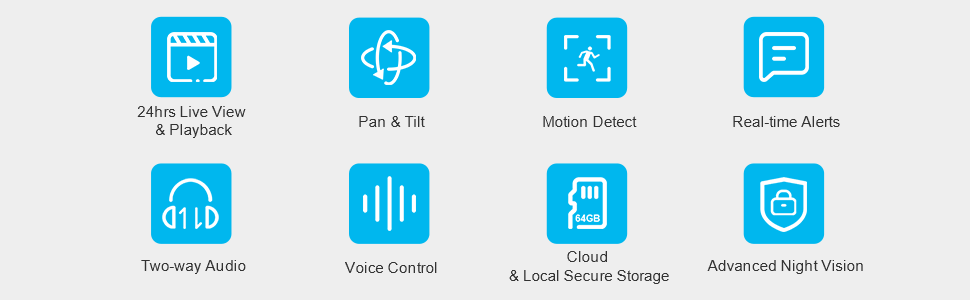 التخزين السحابي والمحلي الآمن: التسجيل المستمر أو خيارات التسجيل المكتشفة عن الحركة. بروتوكولات أمان متعددة للحفاظ على أمان بياناتك وخصوصيتك ويمكنك التشغيل عبر تطبيق Tuya. سيتم تخزين جميع بيانات الخصوصية في بطاقة Micro SD المحلية الخاصة بك (تُباع بشكل منفصل) أو خدمة الاشتراك السحابي