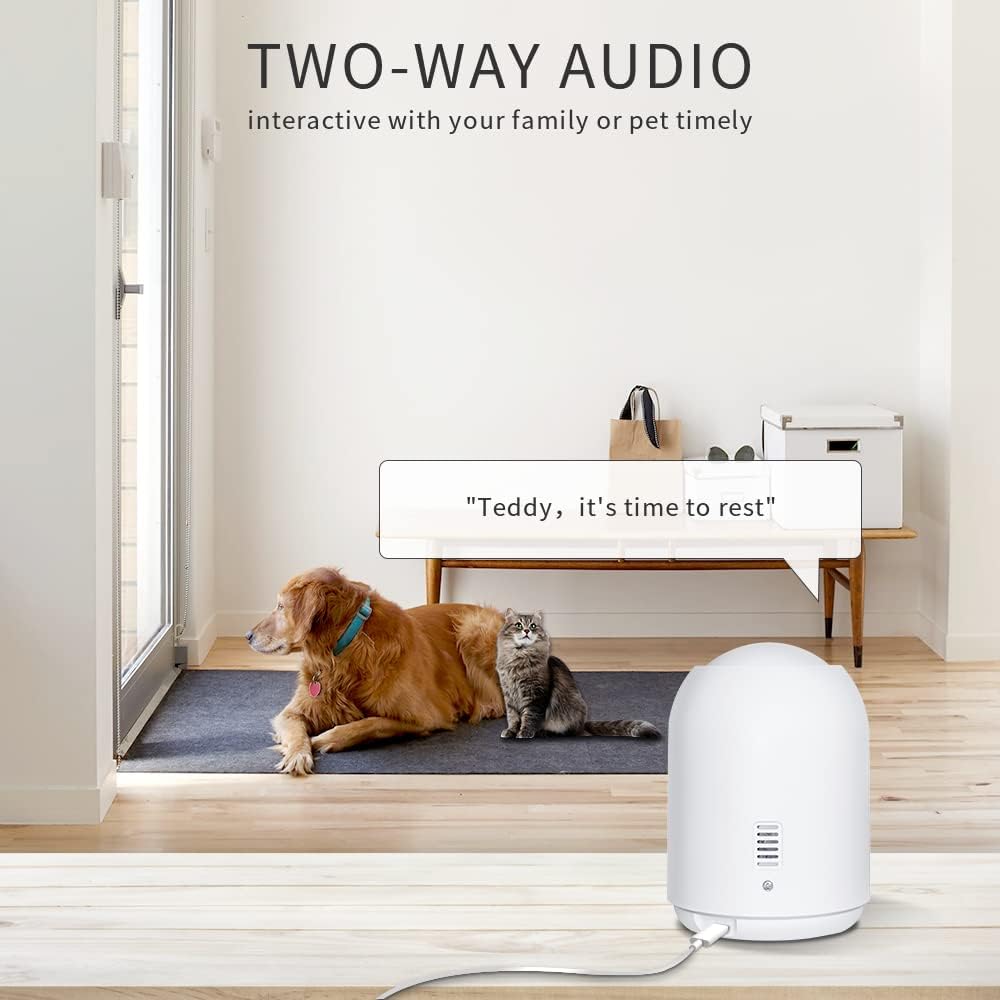 صوت ثنائي الاتجاه: بث فيديو مباشر بسلاسة ووظيفة صوت ثنائية الاتجاه عبر هاتفك وجهازك اللوحي. مكبر صوت مدمج بكاميرا الحيوانات الأليفة وميكروفون مضاد للضوضاء للوصول الصوتي الواضح في اتجاهين للتفاعل مع عائلتك أو حيوانك الأليف في الوقت المناسب عند الحصول على الإشعارات في الوقت الفعلي. يساعدك على البقاء على اتصال مع منزلك في أي وقت وفي أي مكان